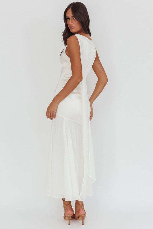 Zarae Cap Sleeve Surplice Back Maxi Dress White