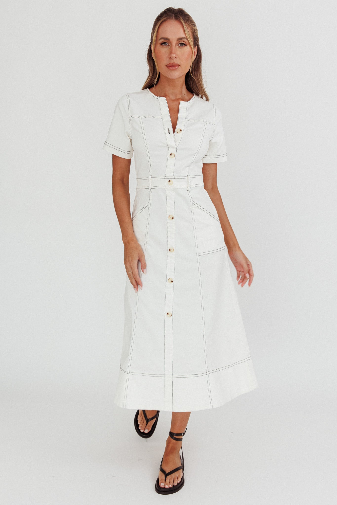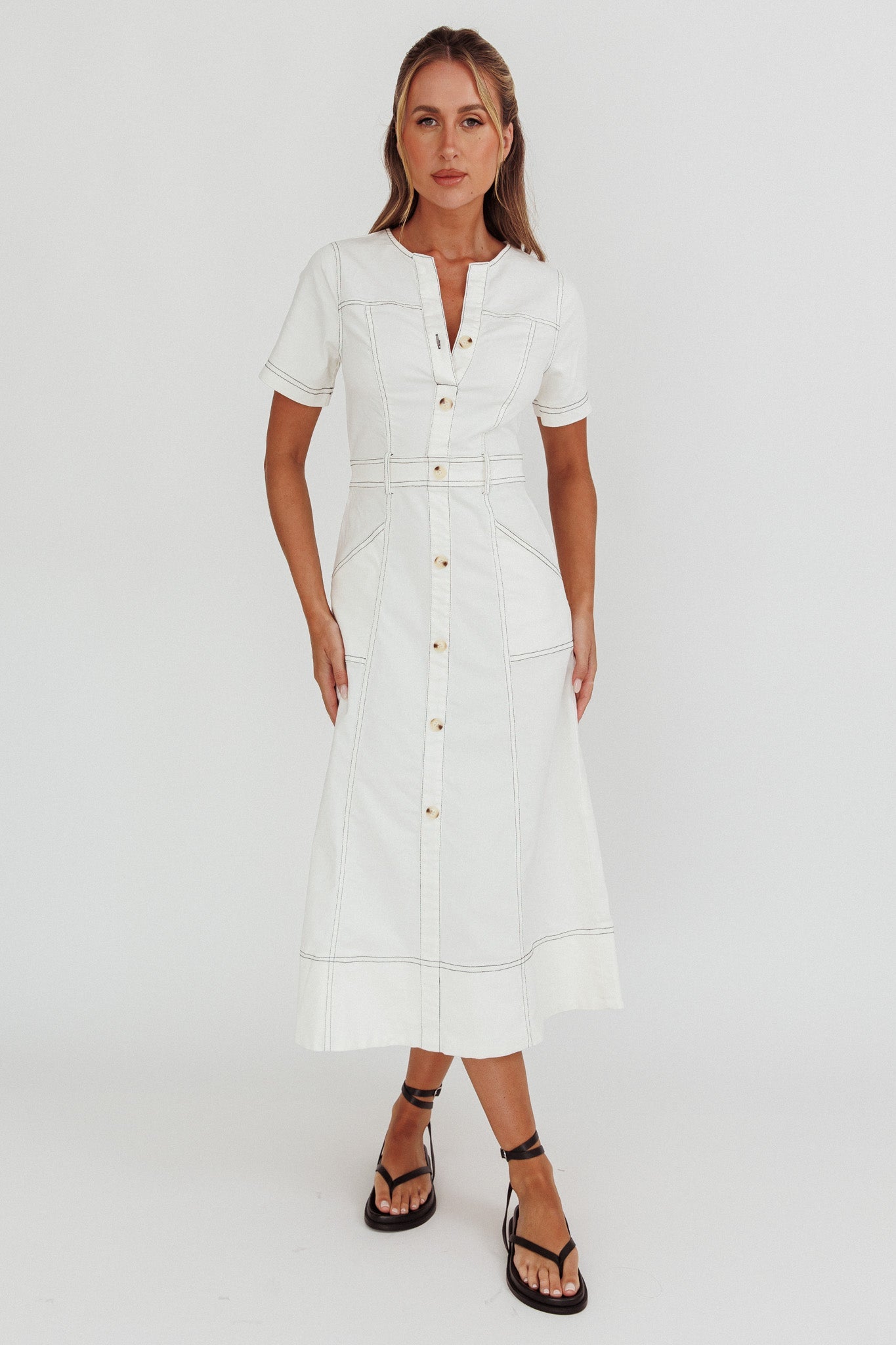 Aspen Love Front Pocket Midi Dress White