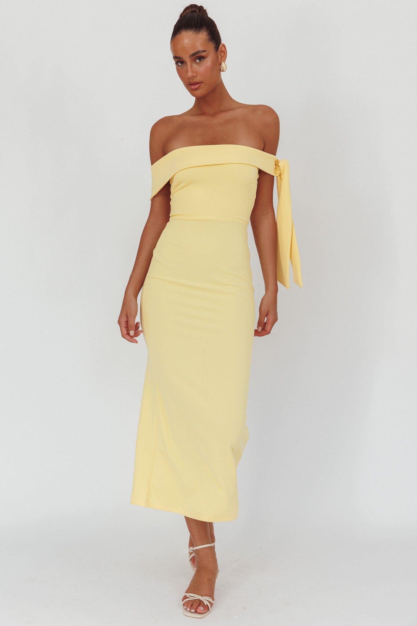 Aurora Sky Off-Shoulder Tie Maxi Dress Lemon