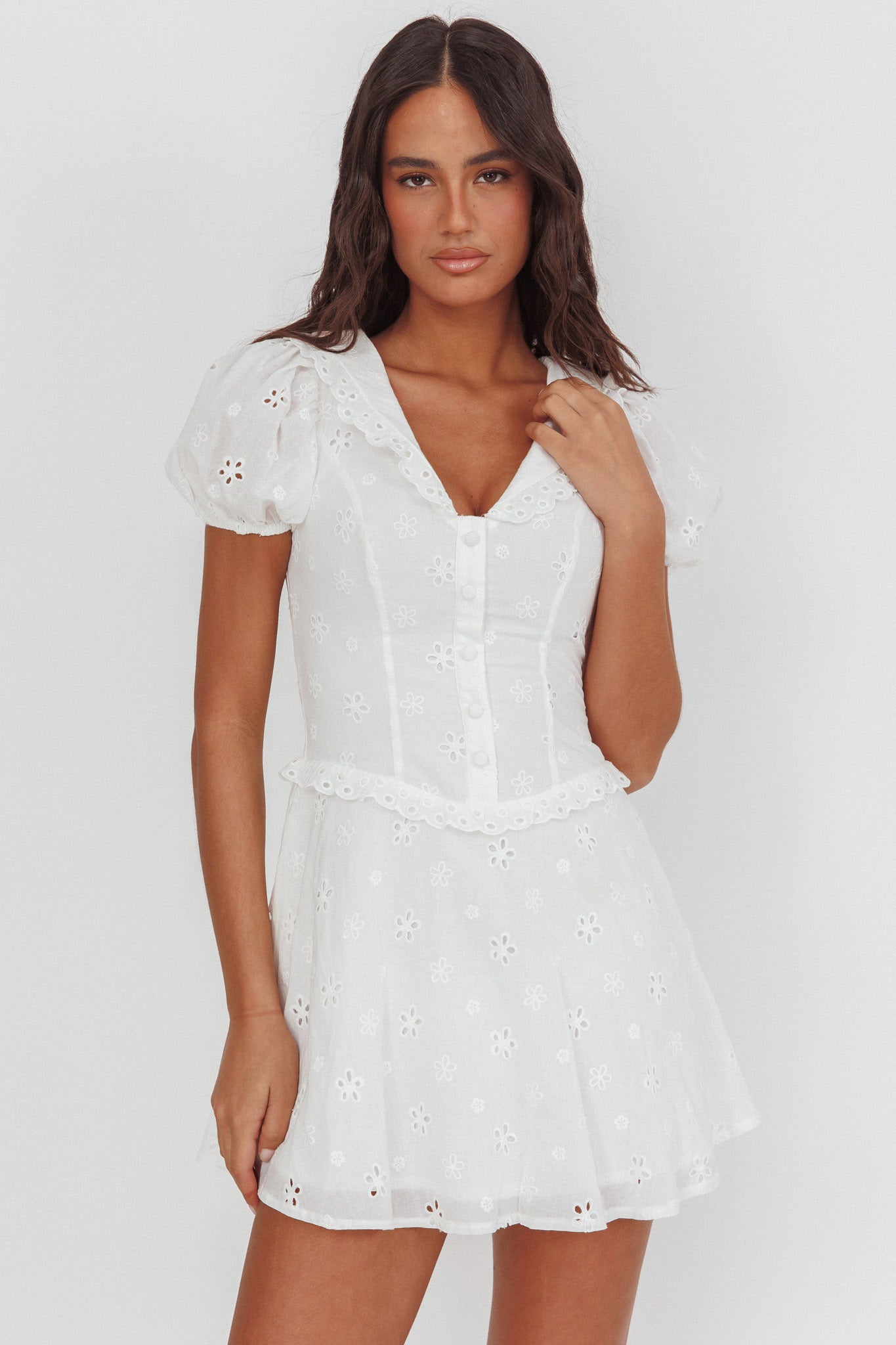 Breeze through your weekend in our super cute Aylin mini dress. It features an eyelet embroidery fabric throughout and pretty puff sleeves. It's perfect for weekend brunch dates with your besties. Team it with sandals and a tote for an It Girl look.