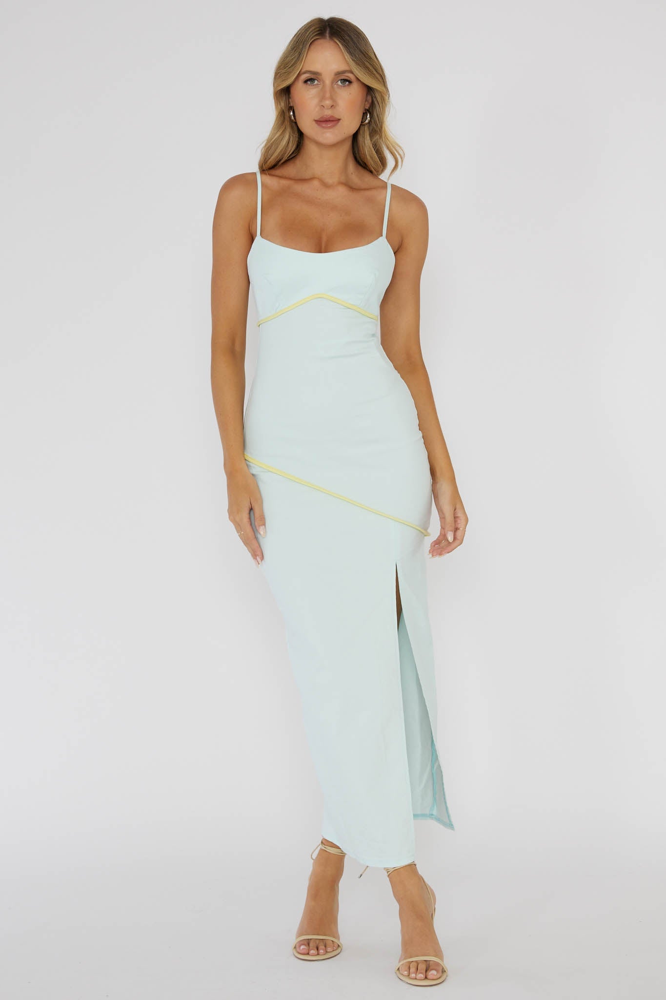 Make jaws drop in our gorgeous Blair midi dress. It features a split in the front and pretty piping trim detail. Wear it for a glam girls' night out teamed with strappy, nude heels and a saddle bag for an unforgettable look.