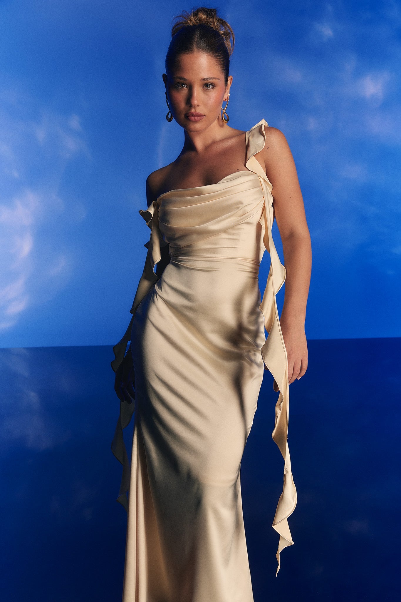 Make jaws drop in our gorgeous Blushing dress. Featuring a ruffle trim and pleated detail in the bust. Perfect for a wedding or a special occasion. Team it with diamante heels and a clutch for an unforgettable look.