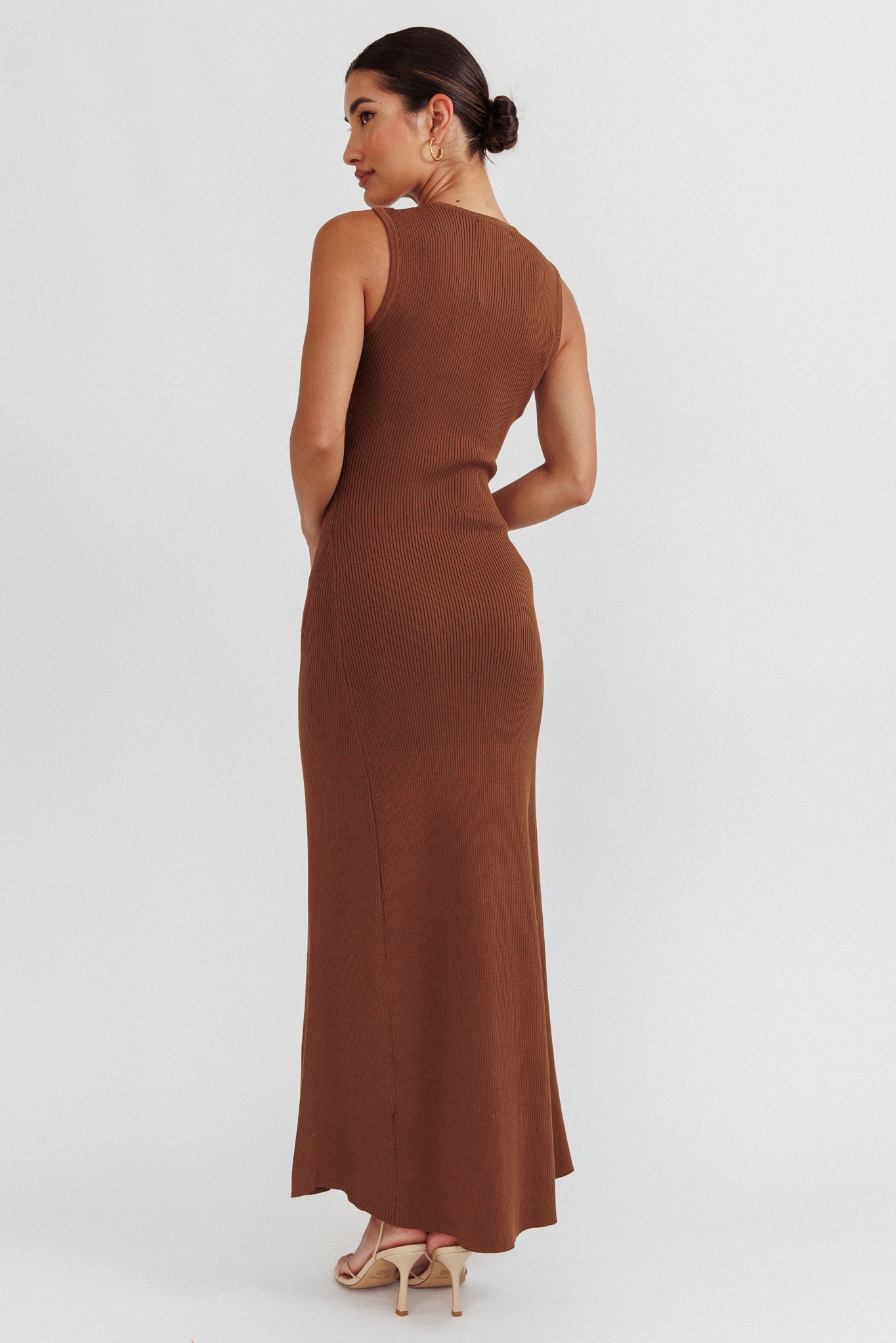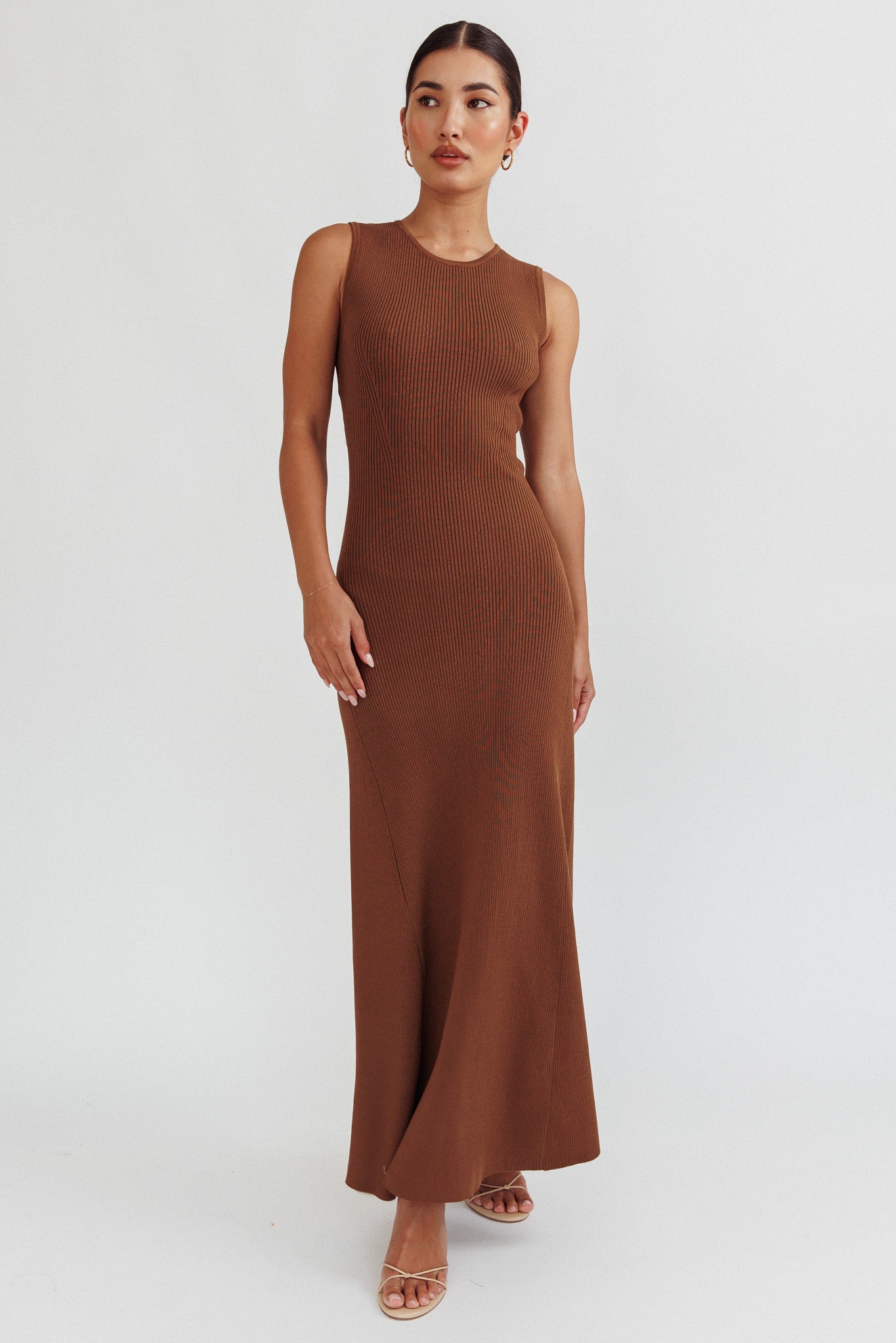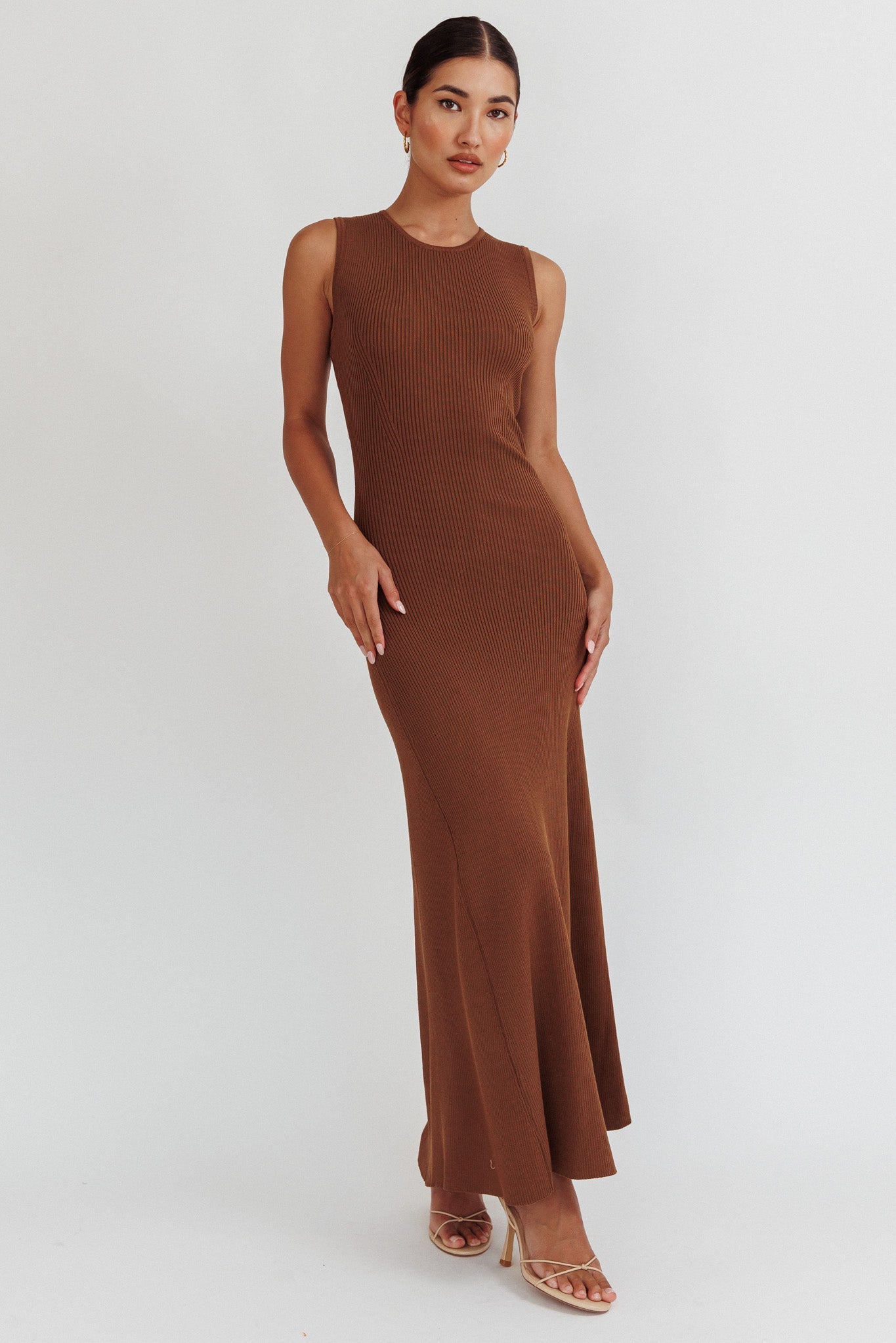 Braylee Sleeveless Ribbed Knit Maxi Dress Chocolate