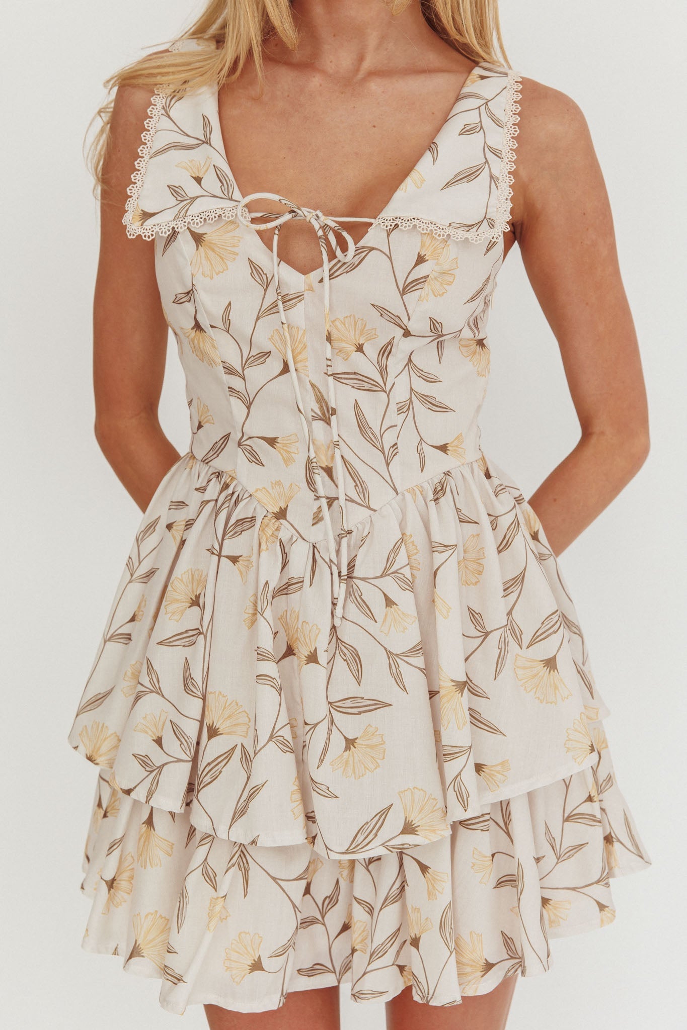 Corella Tied Bust Layered Hem Mini Dress Floral Butter
