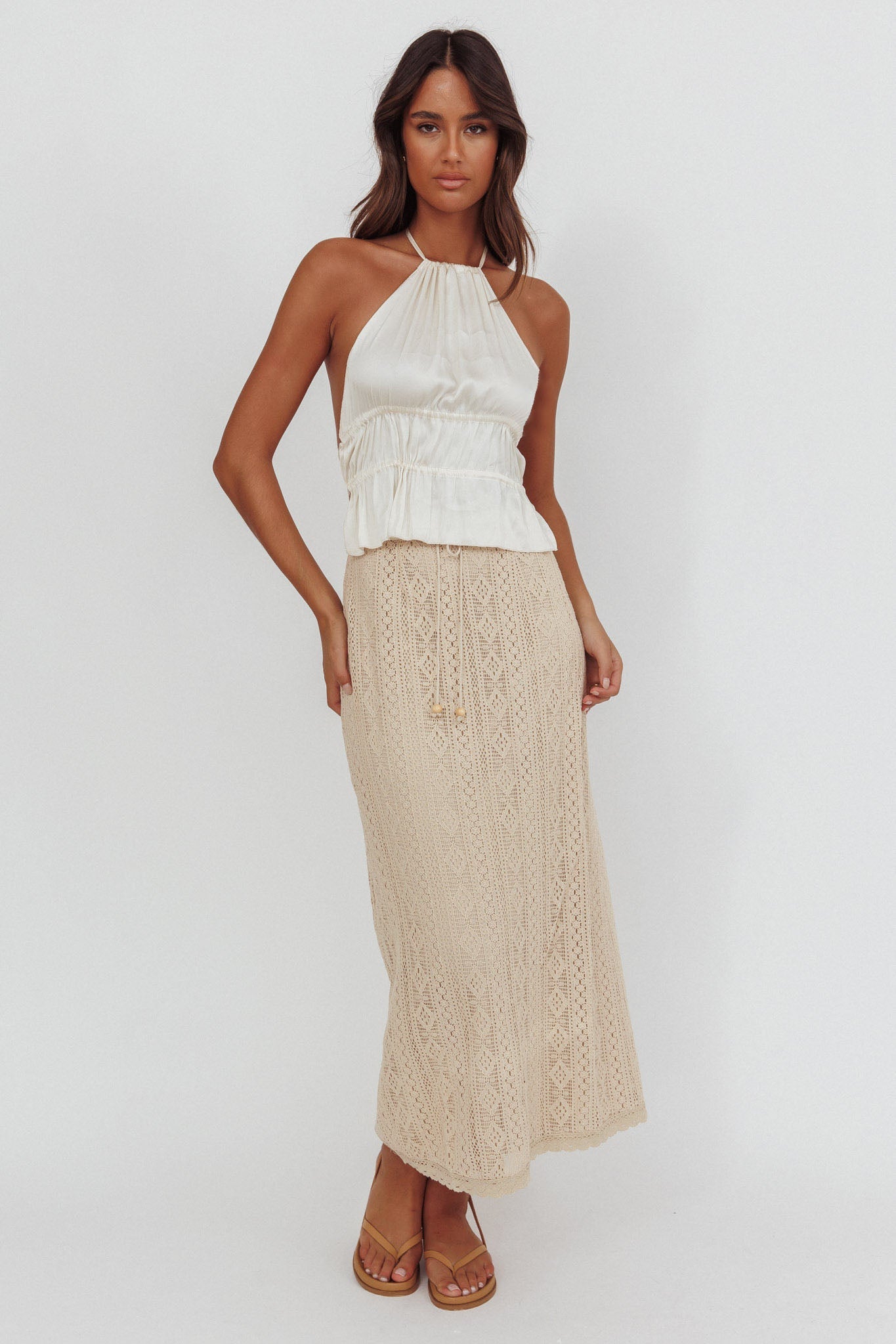 Float through your day in our gorgeous Days Away maxi skirt. We are in love with its pretty crochet lace throughout. It's giving boho babe and we are here for it! Wear it on weekends strolling your fave vintage market teamed with a tank top, sandals and a tote for a cute look.