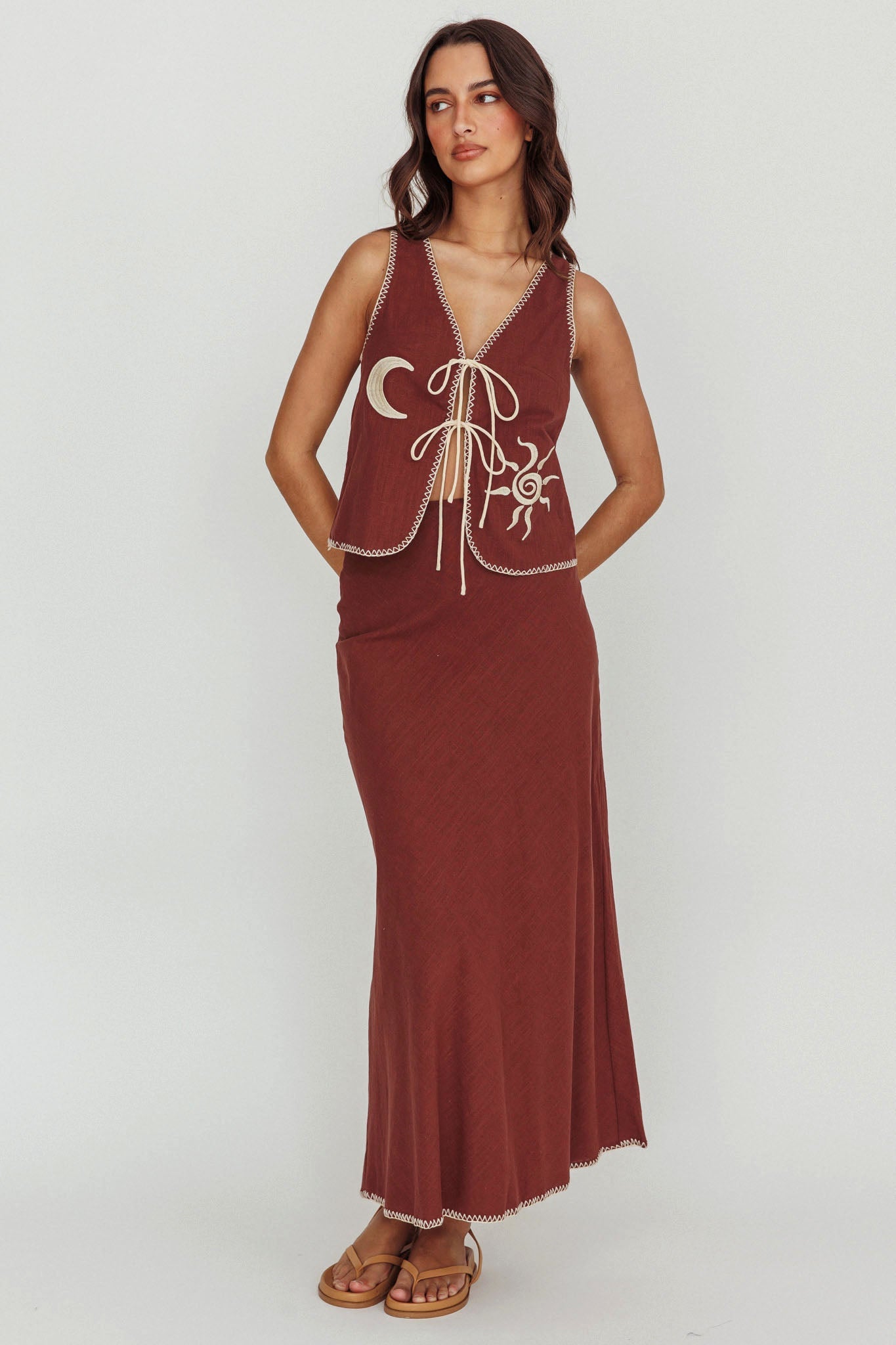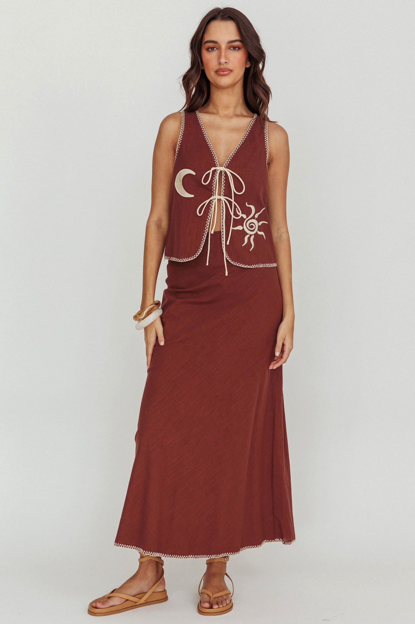 Float through your day in our pretty Dose Of Sunshine maxi skirt. We are in love with its pretty contrast blanket stitch hem! It's perfect for weekend coffee dates with your besties. Team it with its matching vest top and sandals for a super cute look that'll have everyone asking, "Where'd you get your outfit?!"