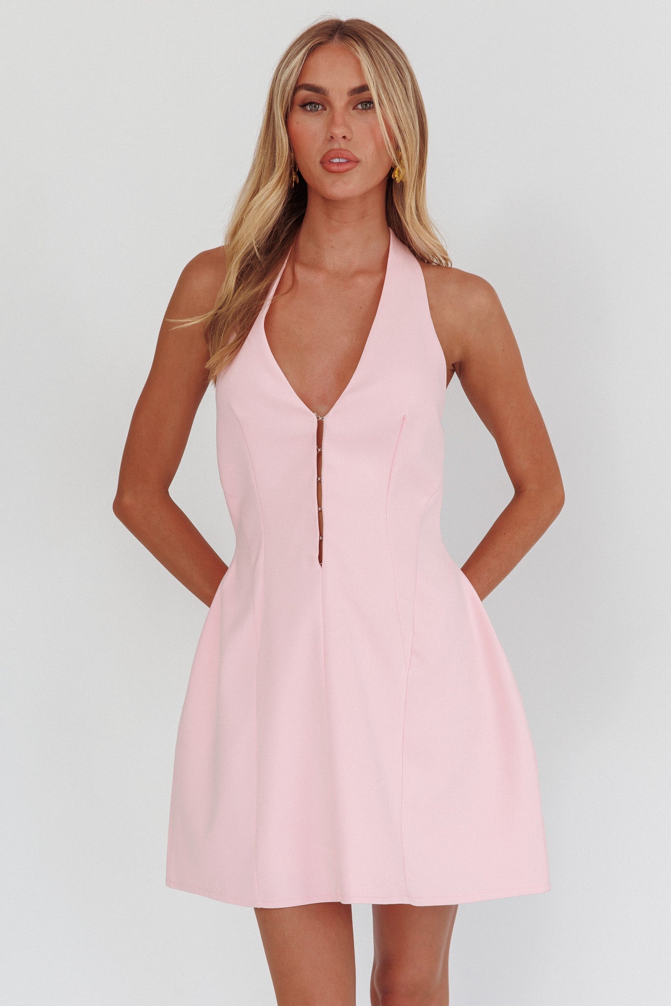 Elisabet Halter Neck Mini Dress Pink
