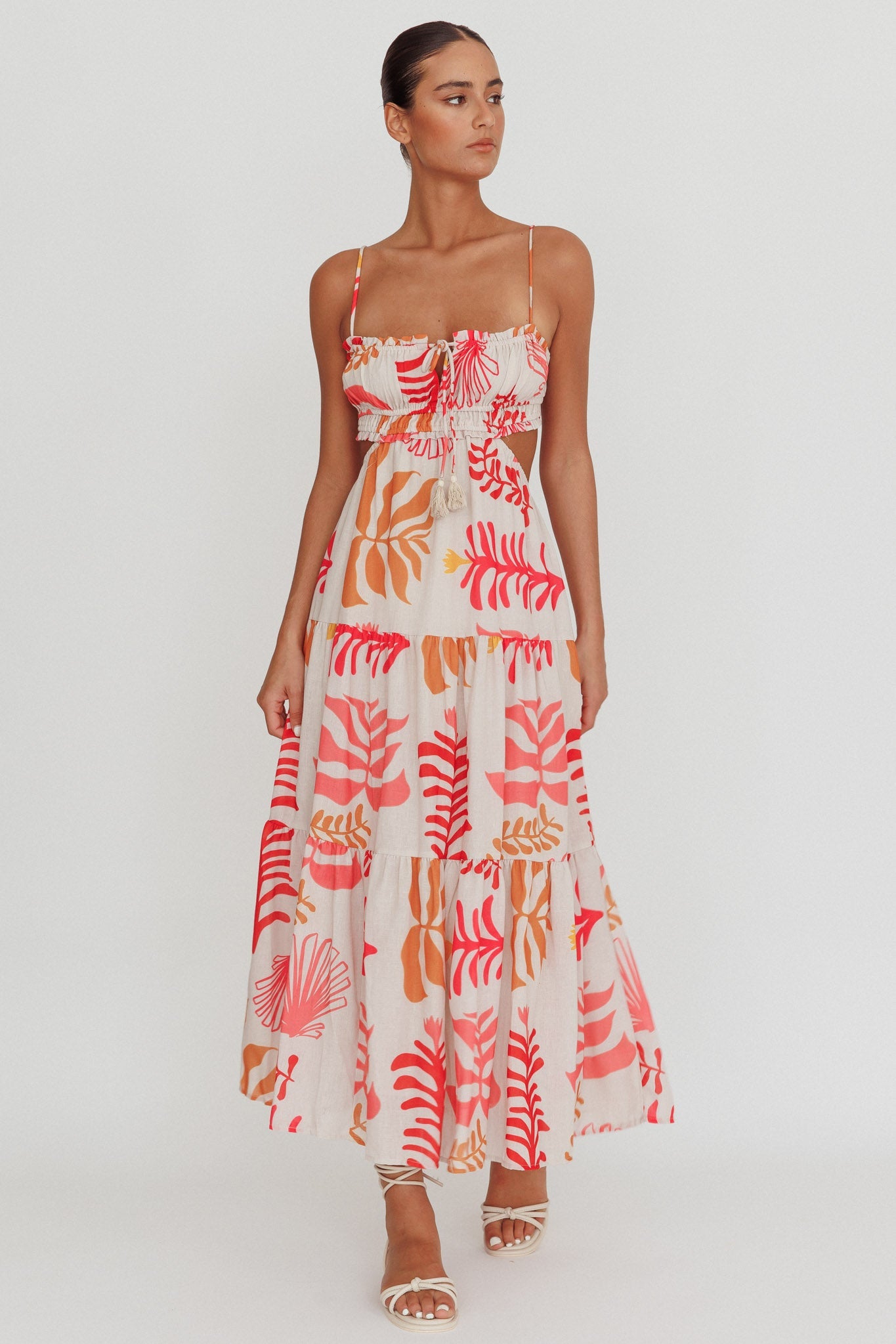Turn heads in our chic Eyona maxi dress. Featuring a cut-out waist and back, it's perfect for weekend brunching with your besties. Team it with mules and a tote for a look that will have you flooded with compliments.