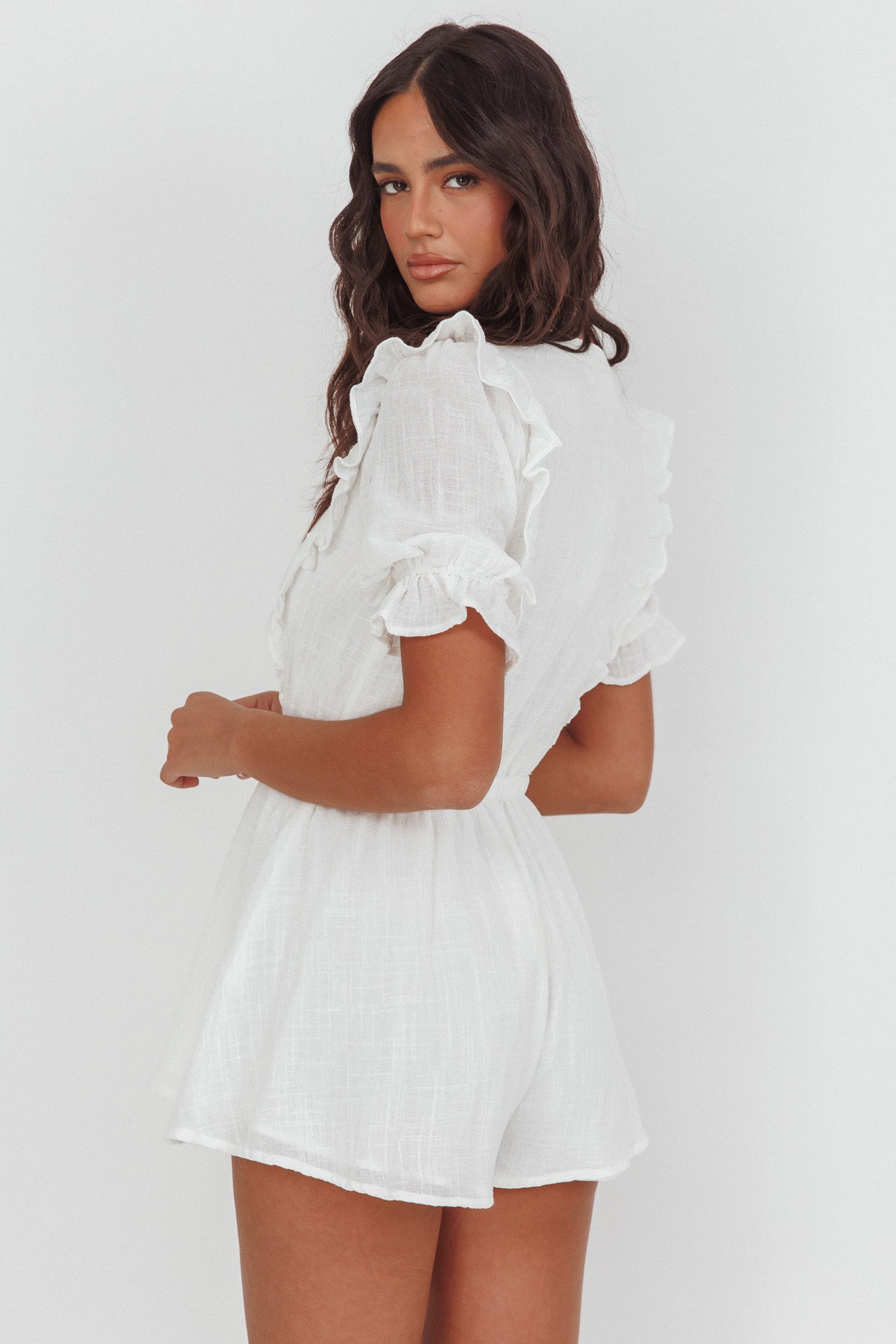 Fable Puff Sleeve Frill Romper White