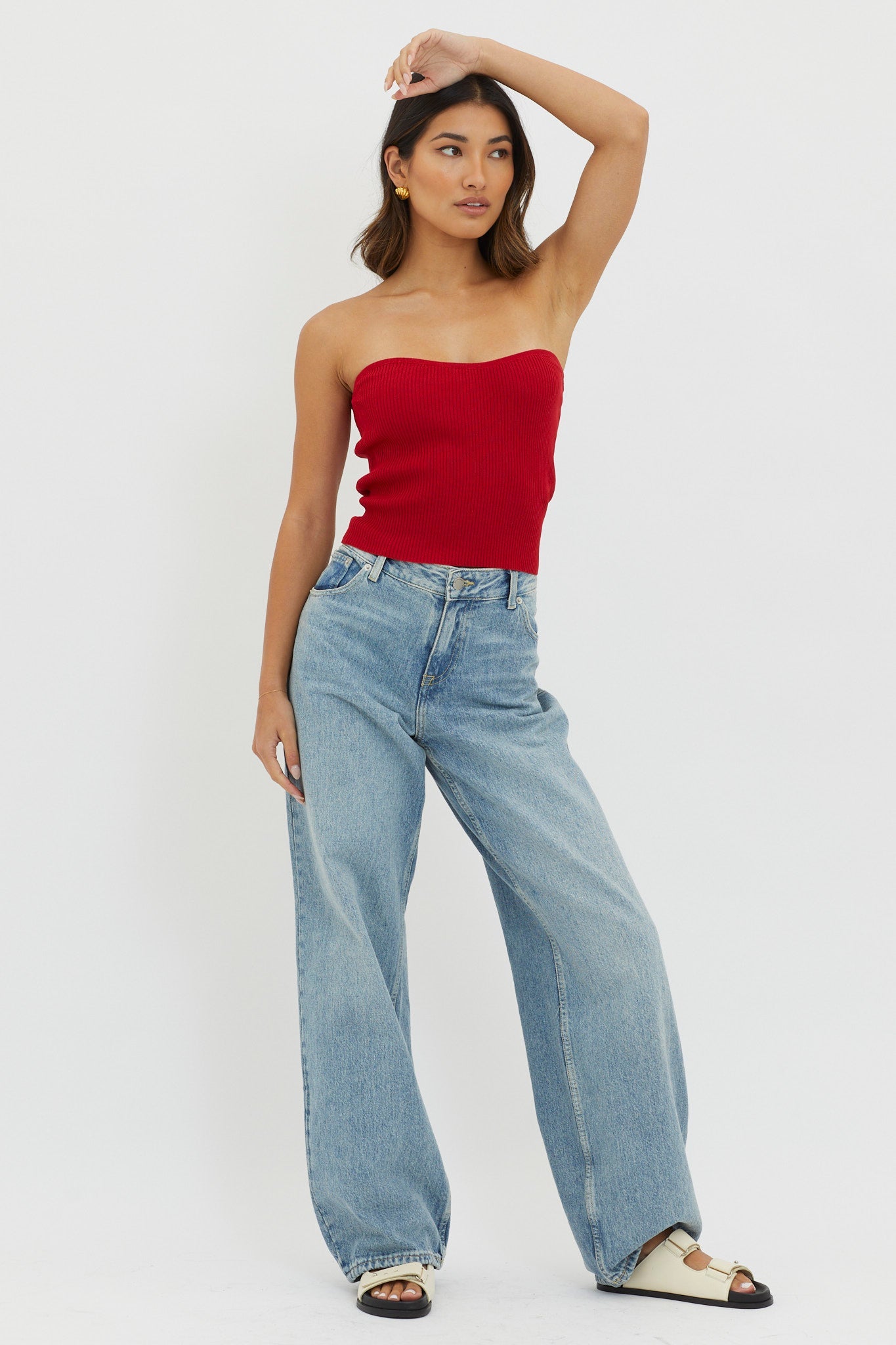 Turn heads in our super cute Flora top. It features a subtle sweetheart neckline and strapless style and we are loving its luxe, ribbed knit fabric. Perfect for weekend brunch dates teamed with wide-leg jeans and boots for a chic look.