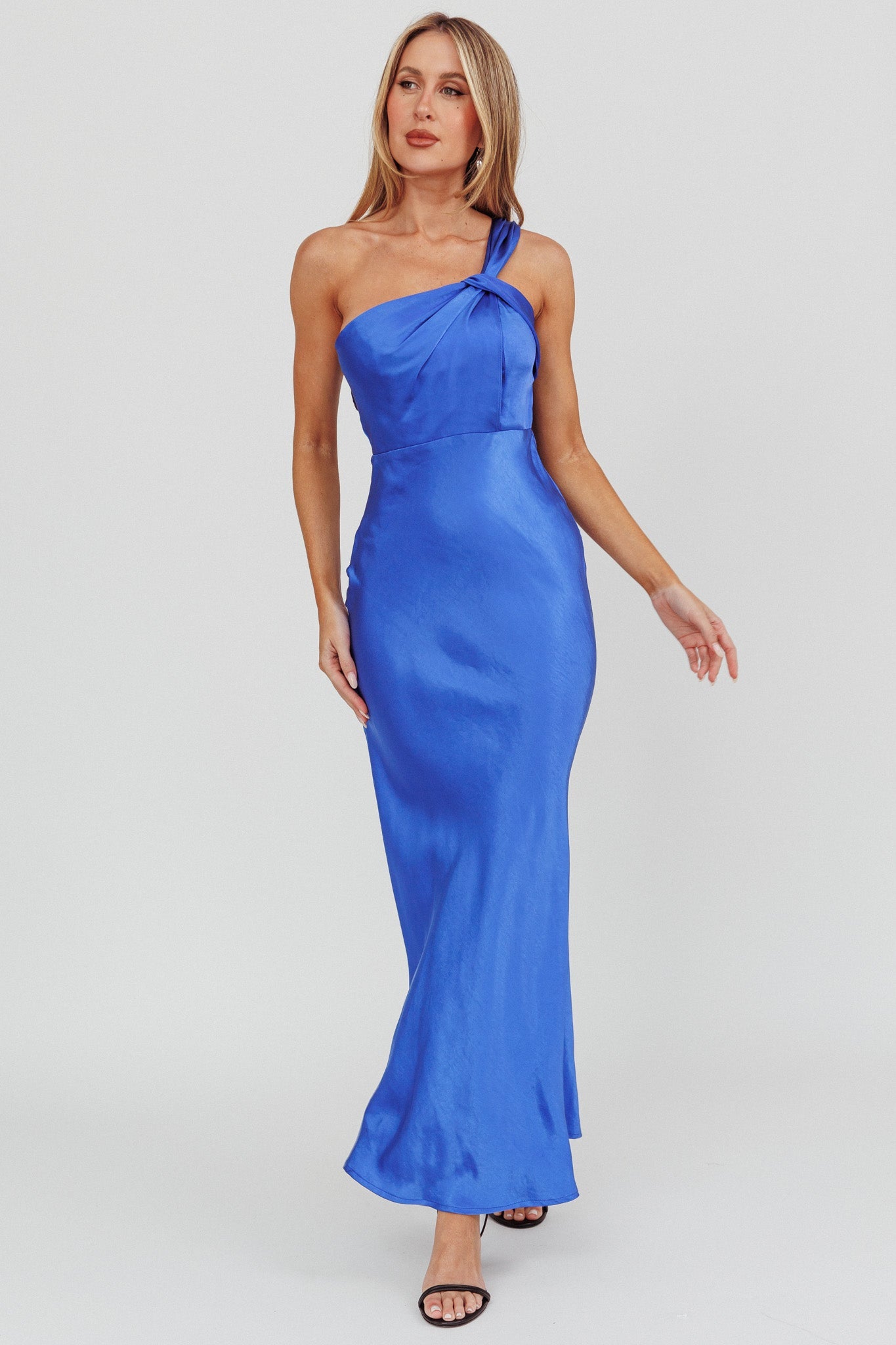 Fly Love Satin One Shoulder Maxi Dress Navy