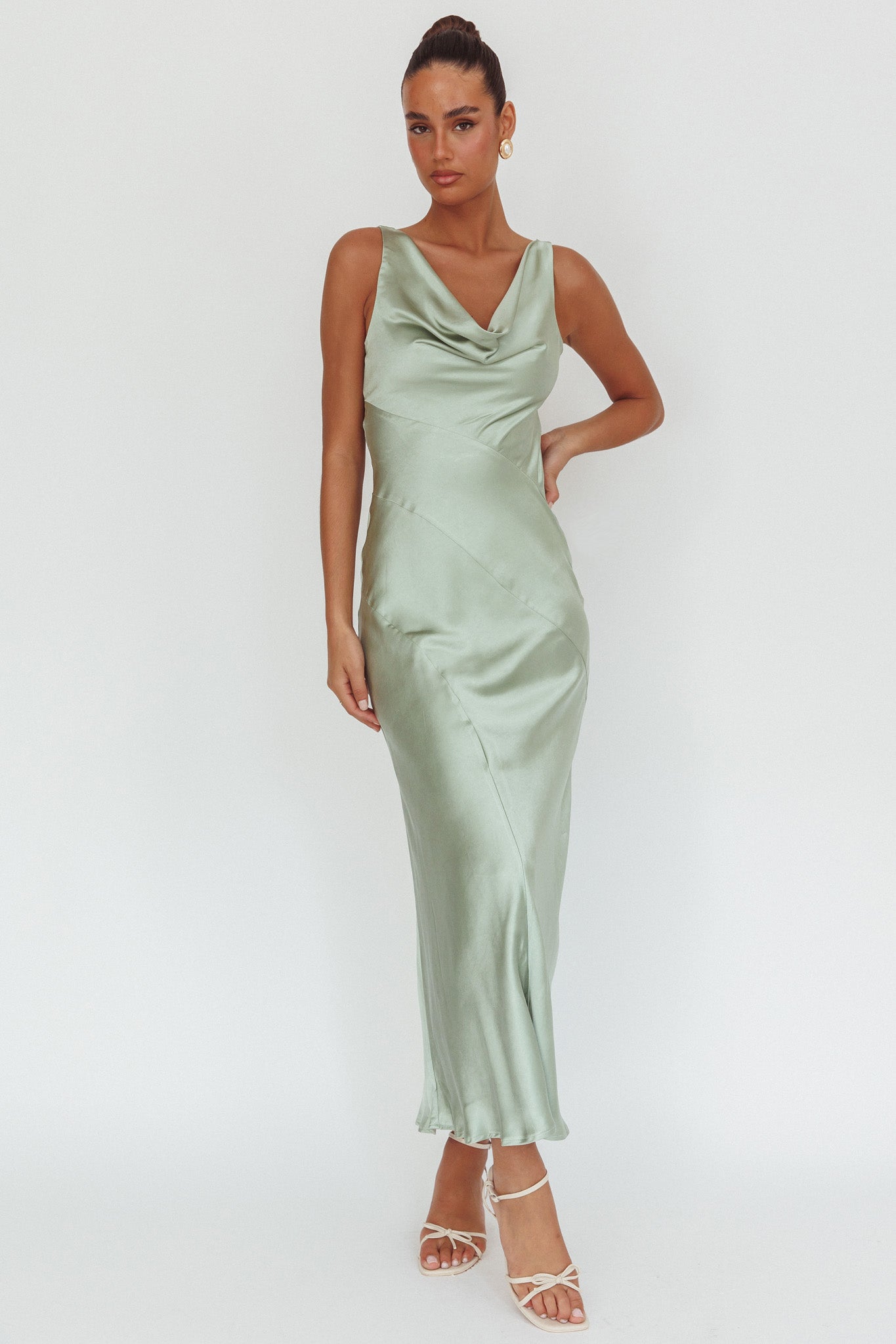 Good Intentions Cowl Neck Open Back Maxi Dress Sage