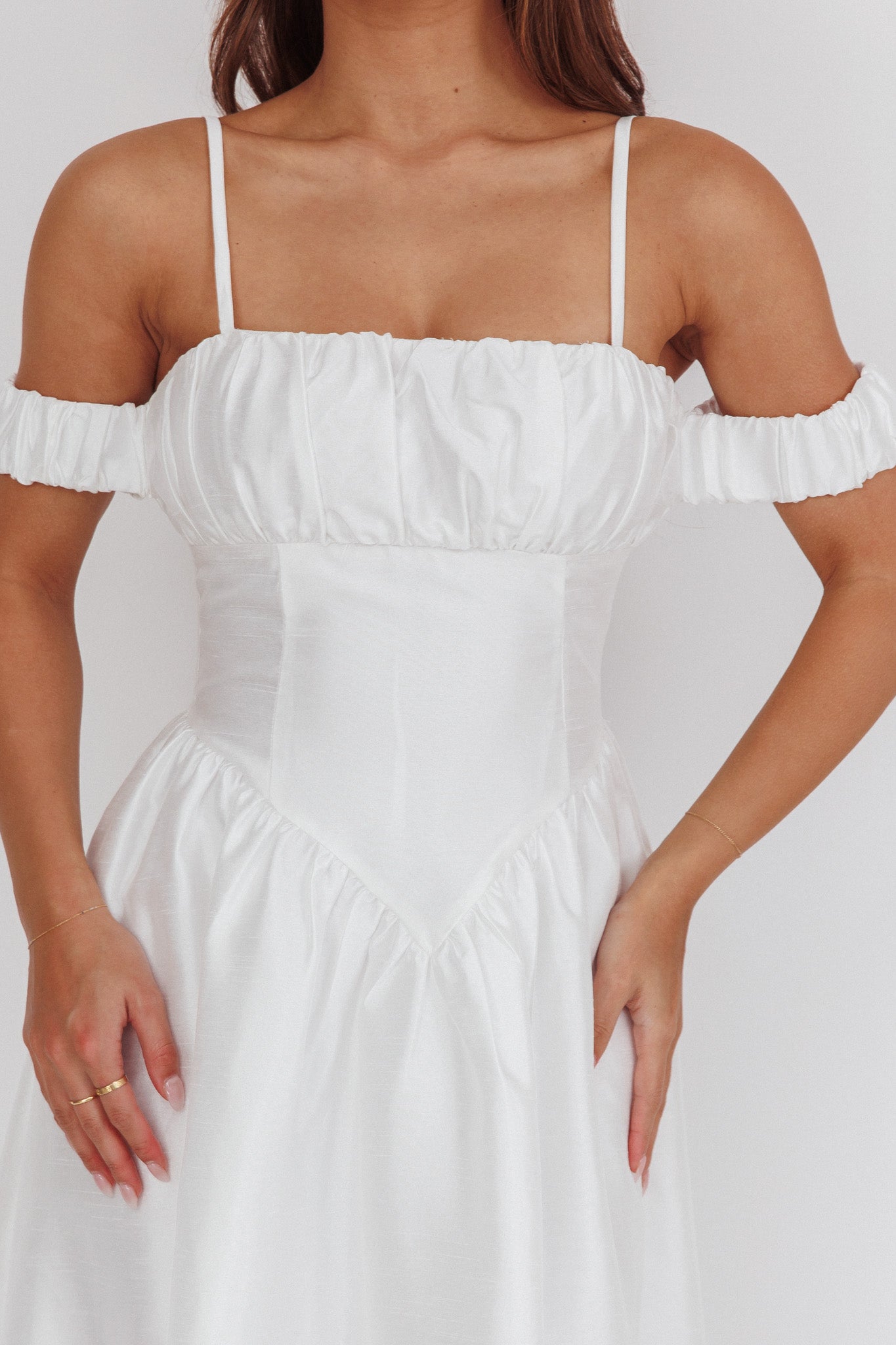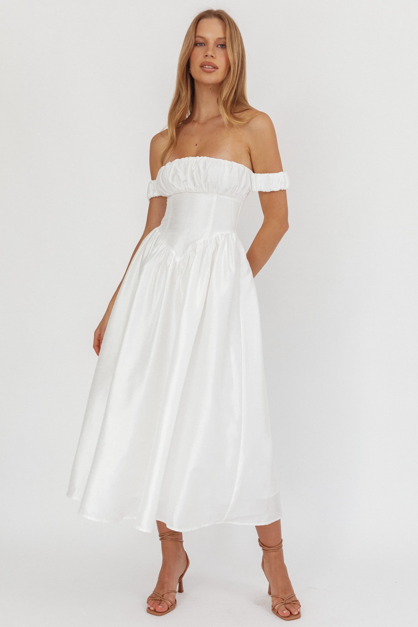 Heavens Above Off-Shoulder Basque Waist Midi Dress Ivory