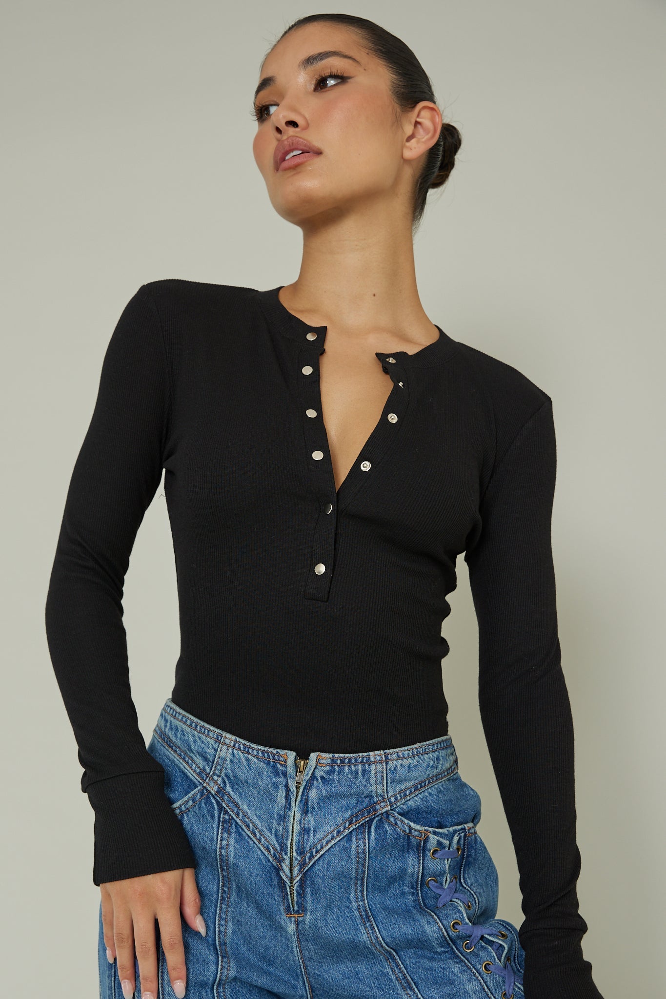 Say hello to your new fave bodysuit. The Henley is a must-have closet staple that's super versatile and perfect for layering. Team it with wide-leg jeans and sneakers for coffee dates with your BFFs or dress it up with a tailored, wide-leg pant and blazer for your nine-to-five.