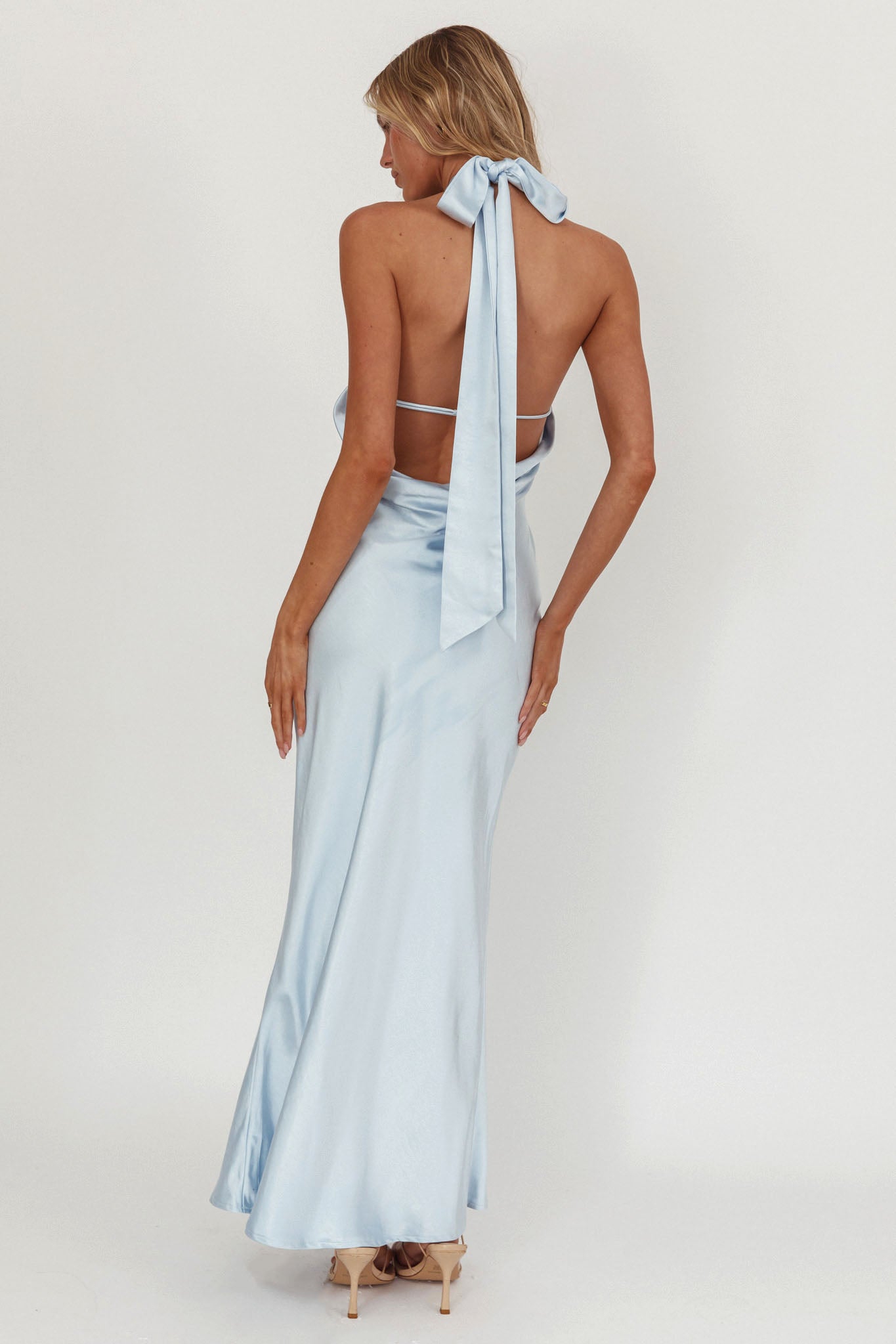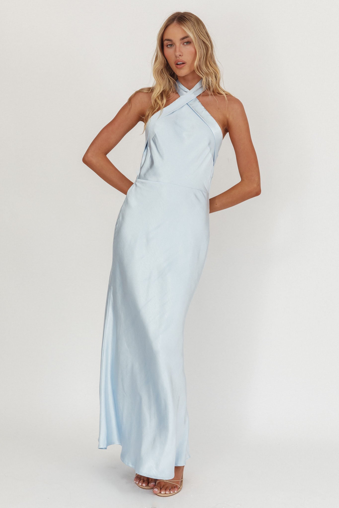 Italia Azure Crossover Halterneck Maxi Dress Ice Blue