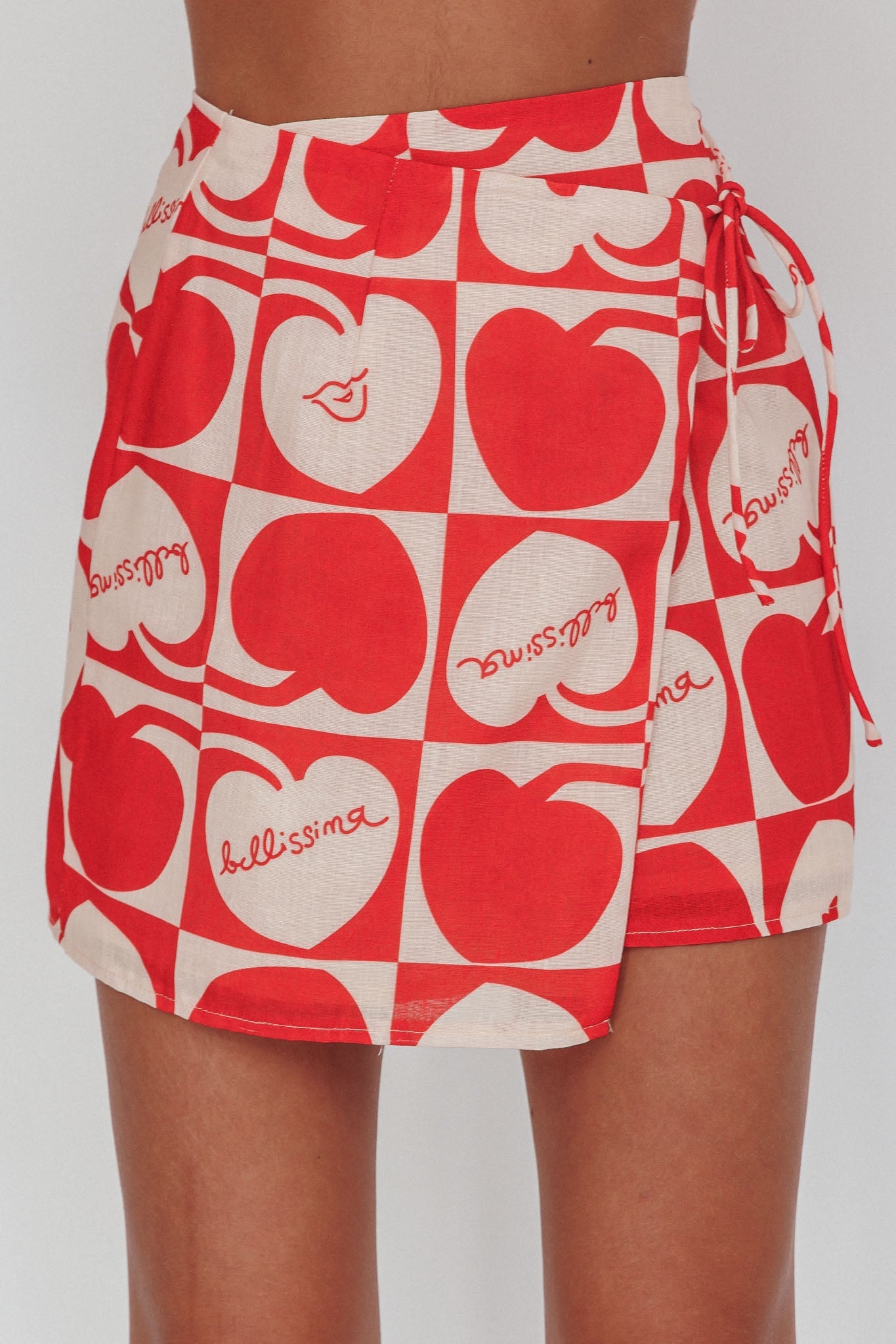 Ithaca Cherry Print Mini Wrap Skirt Red Beige