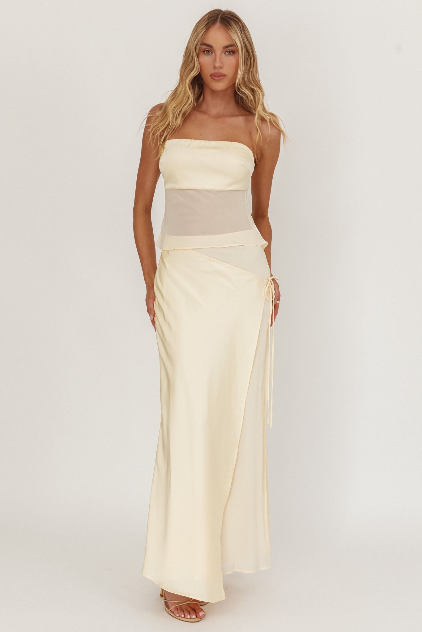 Make them stop and stare in our gorgeous Jerica skirt. We are obsessed with its sheer panel and on-trend butter hue. It's perfect for a girls' night out teamed with its matching top, kitten heels and a saddle bag for a look that will turn heads.