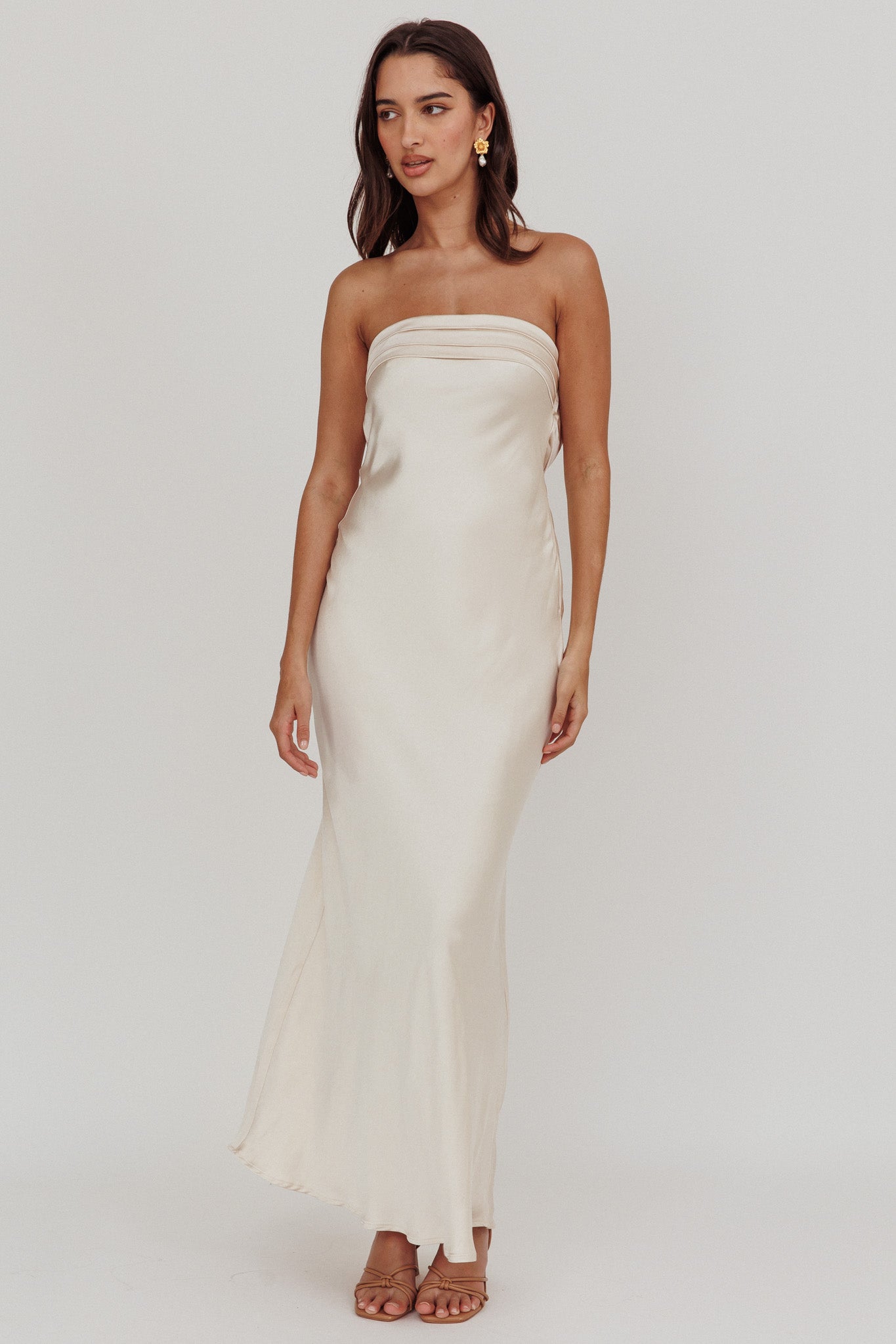 Kona Strapless Pleated Bust Satin Maxi Dress Champagne