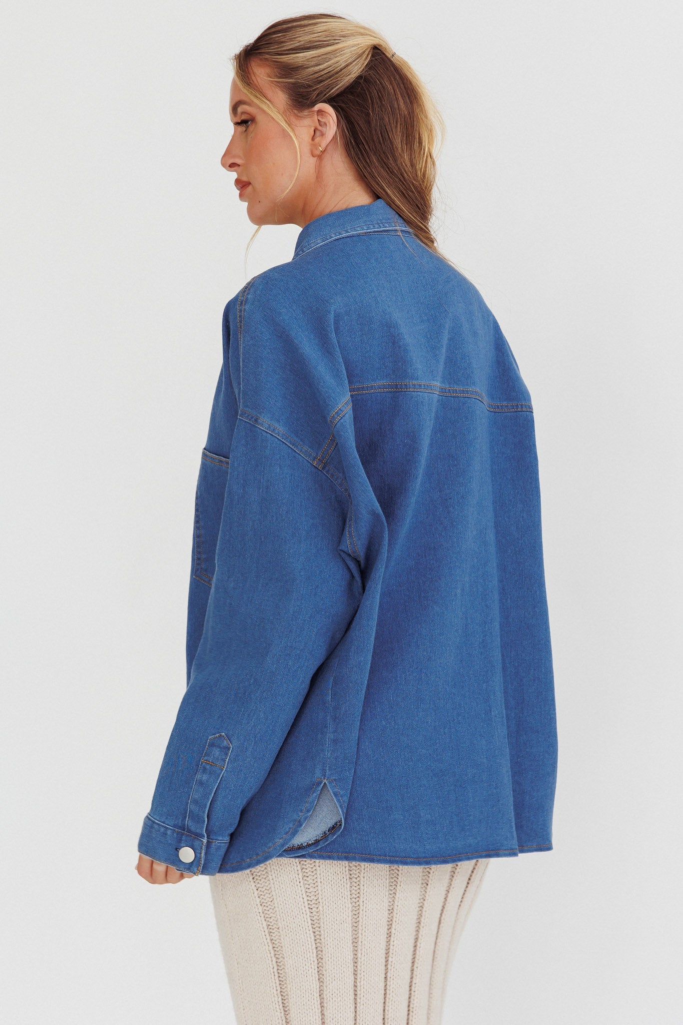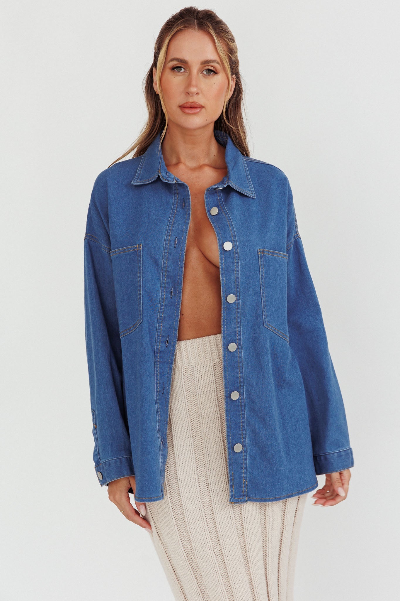 Breeze through your weekend in our super chic Lake Days top. We are loving its oversized fit and brushed metal buttons in the front. It's perfect for an effortless, It Girl look teamed with jeans and a tank top for a coffee date with your BFF.