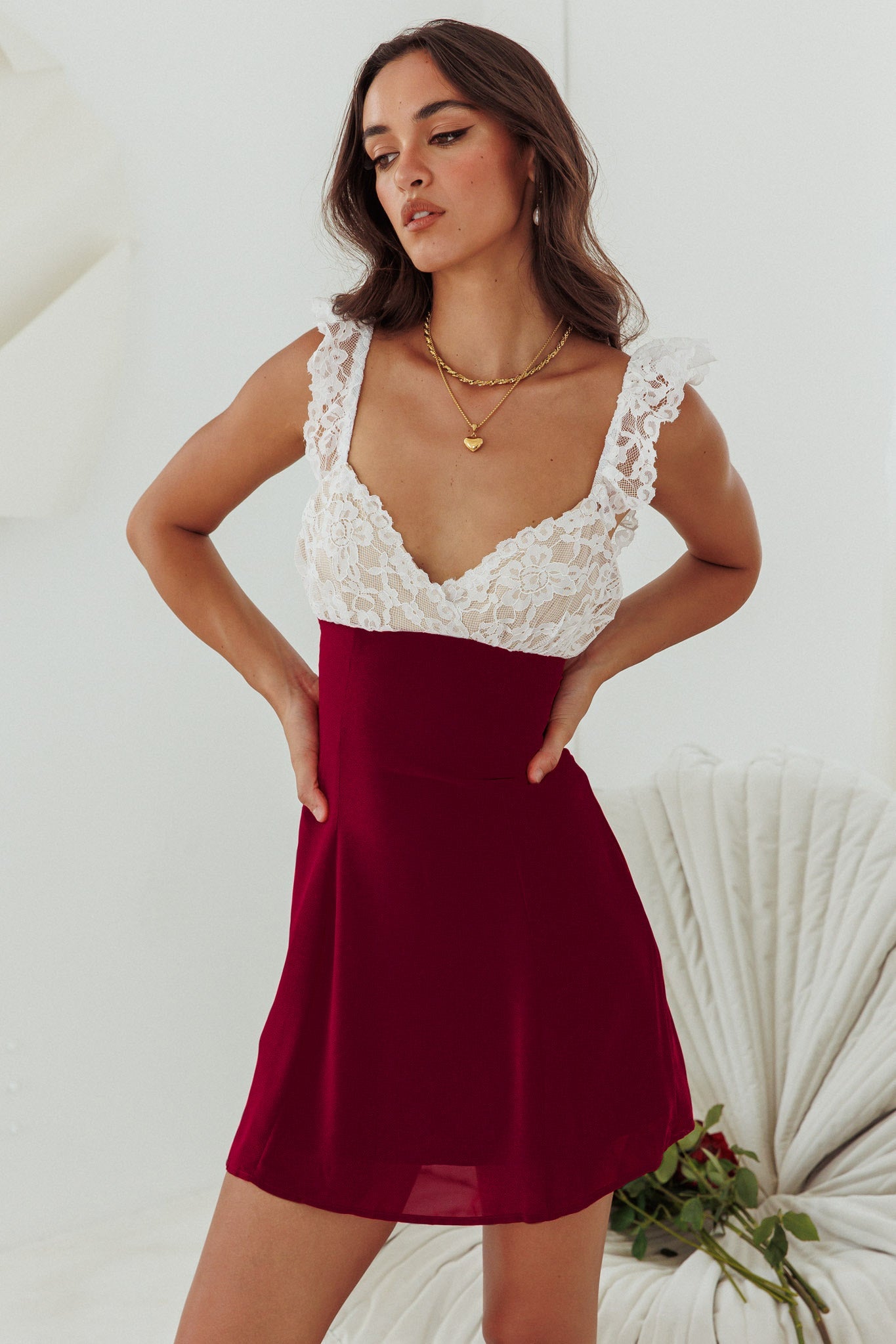 Lakyn Lace Bust Tied Back Mini Dress Wine