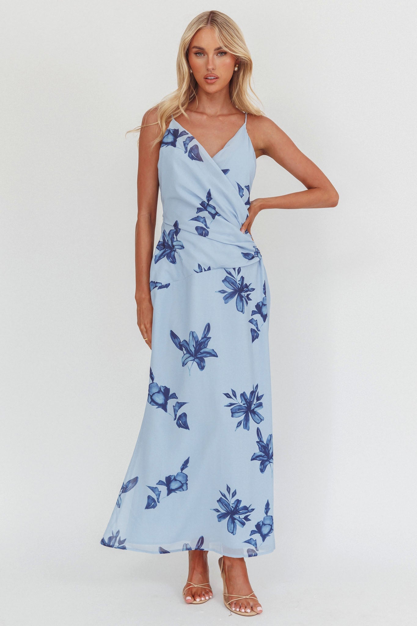 Lexxi Crossover Gathered Waist Maxi Dress Floral Blue