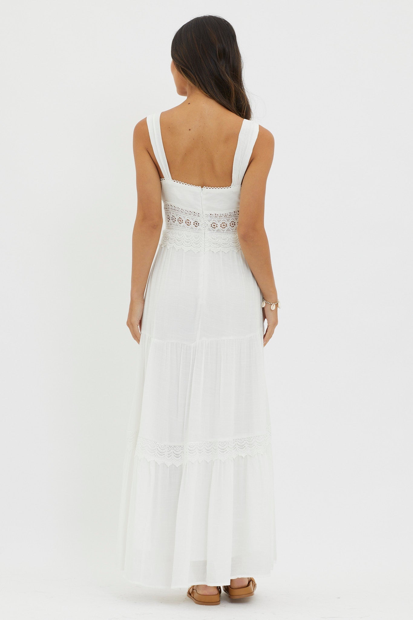 Float through your day in our pretty Libby maxi dress. It features crochet lace detail in the waist and a tie in the bust. Perfect for lazy Sundays strolling your fave vintage markets. Team it with sandals and a straw tote for a chic look.