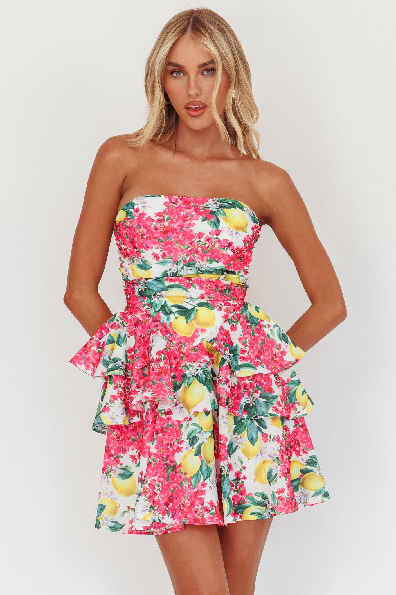Embody the essence of spring with our Like Me mini dress! Featuring a layered ruffle skirt and tied back, this mini dress will become your go-to for cute picnic dates or special occasions! Complete the look with your favorite heels and jewelry.