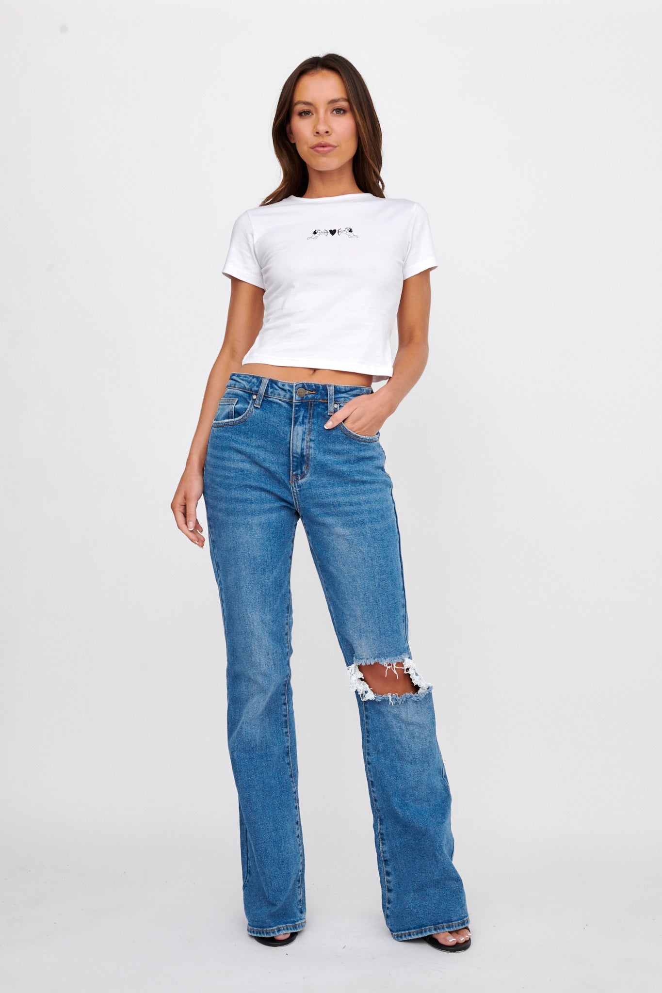 Make a statement in the Angels tee by LIONESS. Perfect for coffee dates with your girls or flirty movie dates with your crush. Team it with wide-leg jeans and slides for an effortless, cool-girl look.
