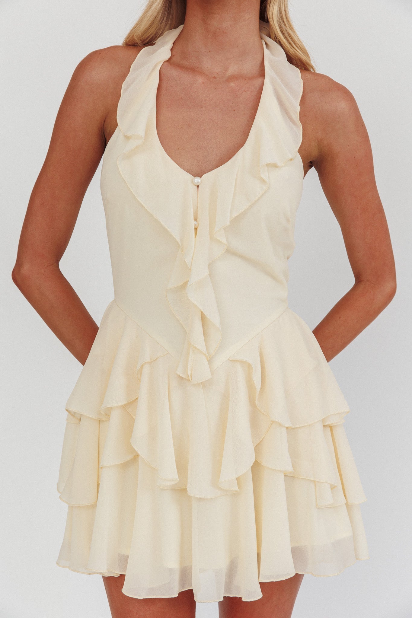 Live Loud Ruffle Layered Hem Mini Dress Cream