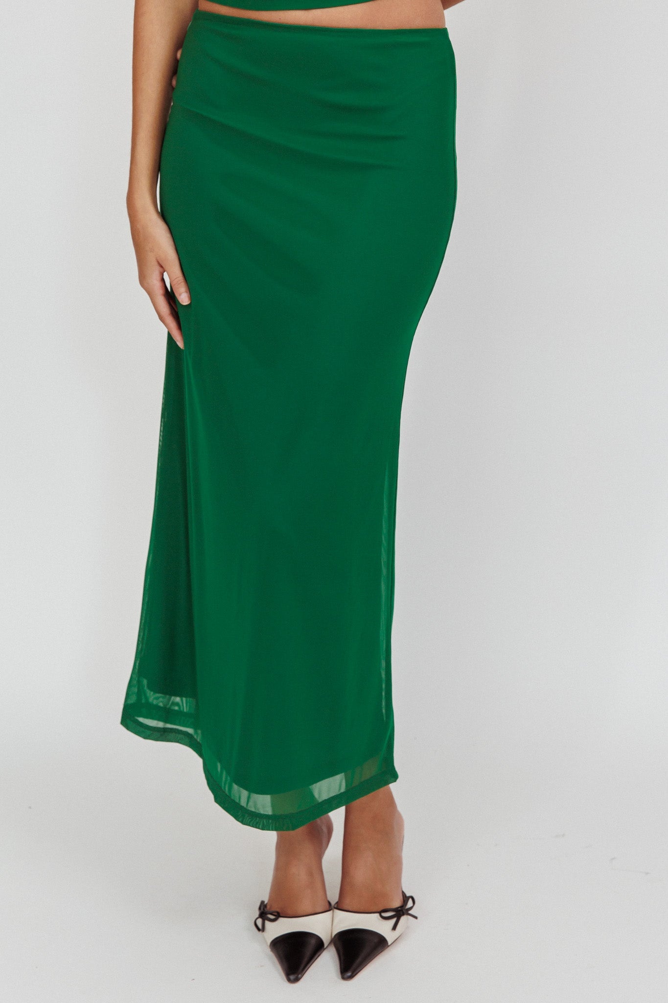 You'll leave them speechless in our hot Lorely skirt. Featuring a mesh overlay and maxi length, it's perfect for a girls' night out! Team it with its matching halter top and nude kitten heels and get ready to slay!