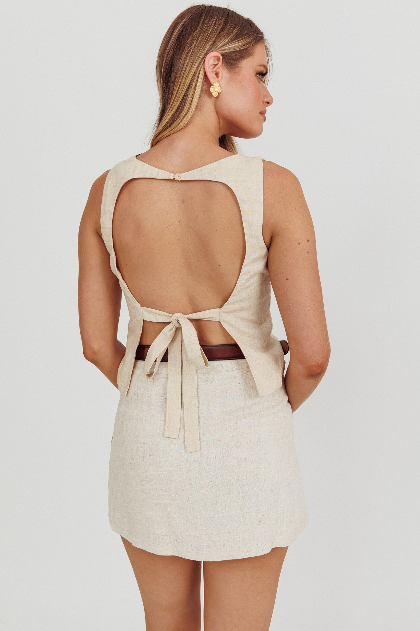 Lyre Song Backless Sleeveless Top Stone