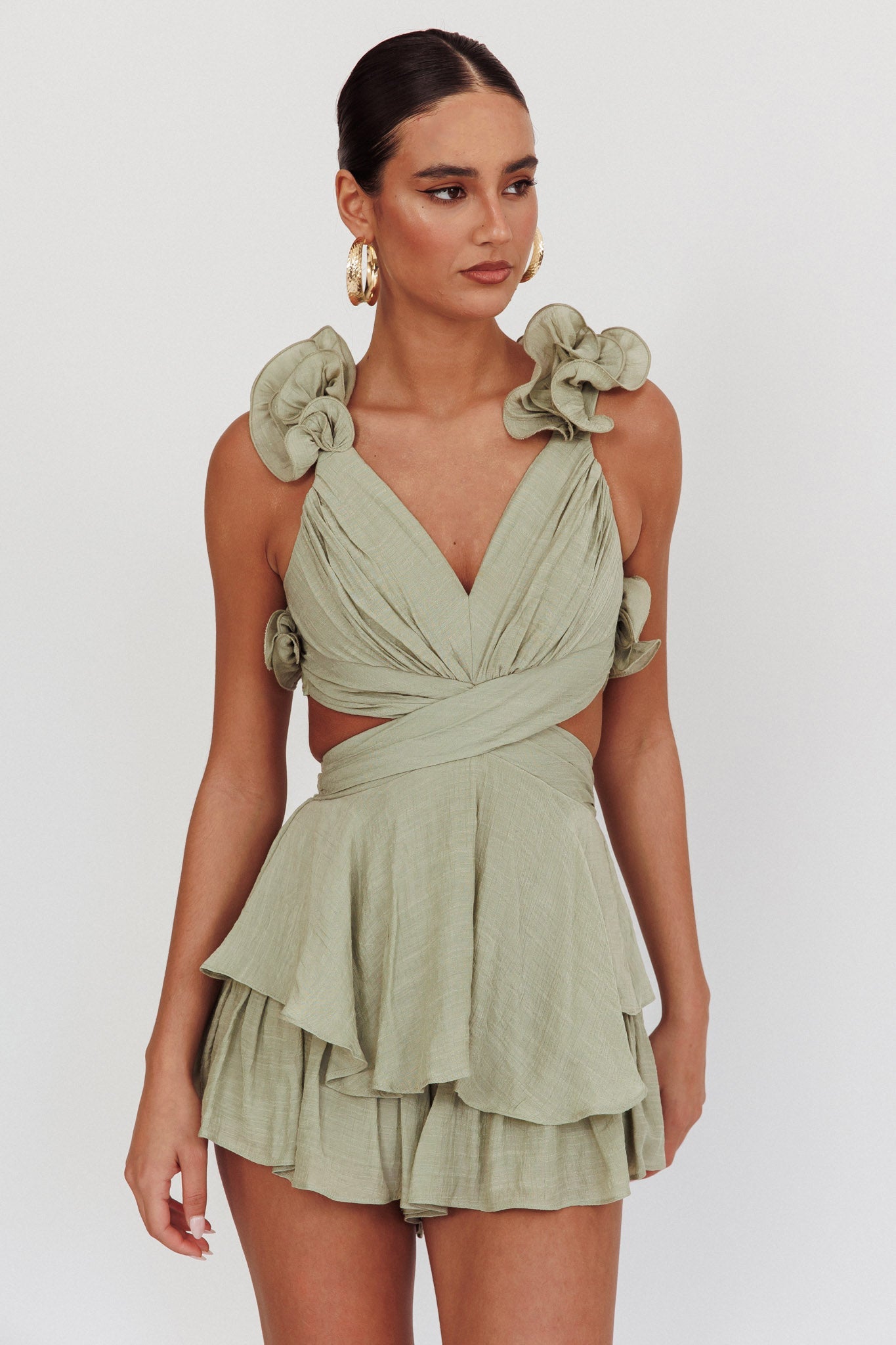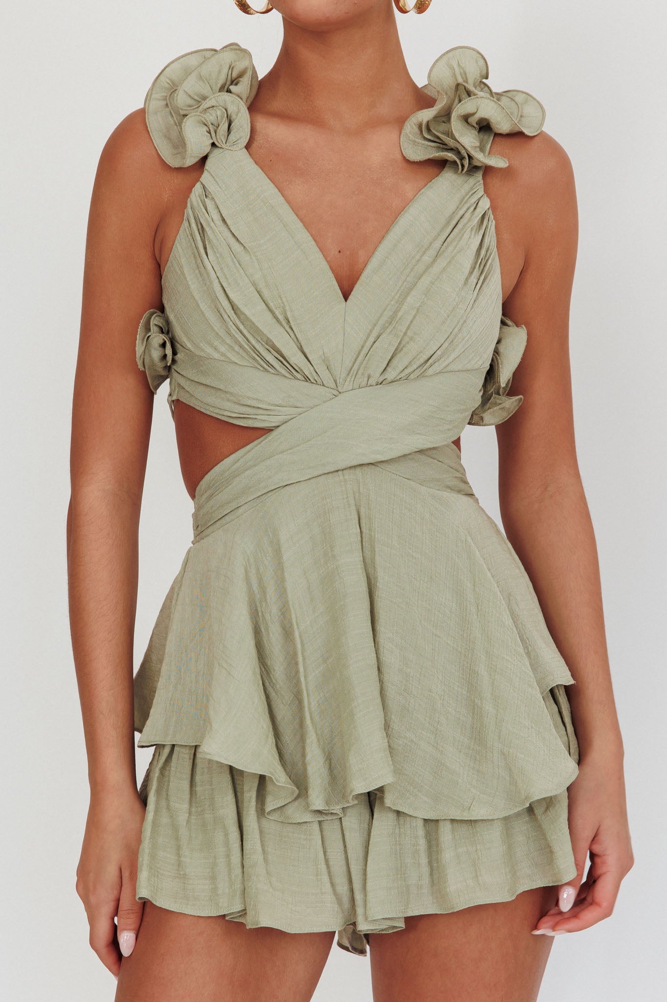 Madara Lace-Up Back Romper Sage
