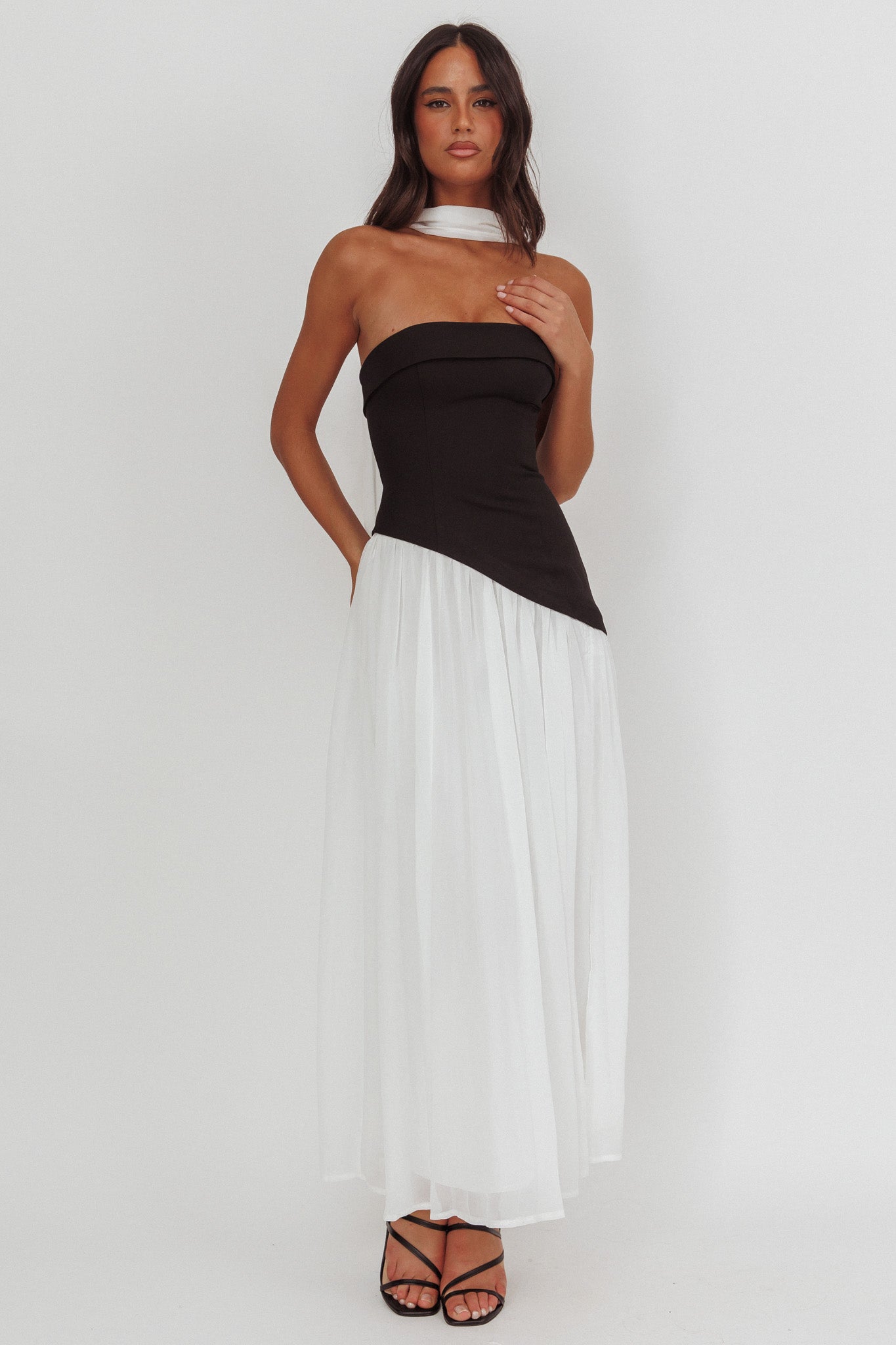 Mariabella Contrast Bodice Maxi Dress Black/White