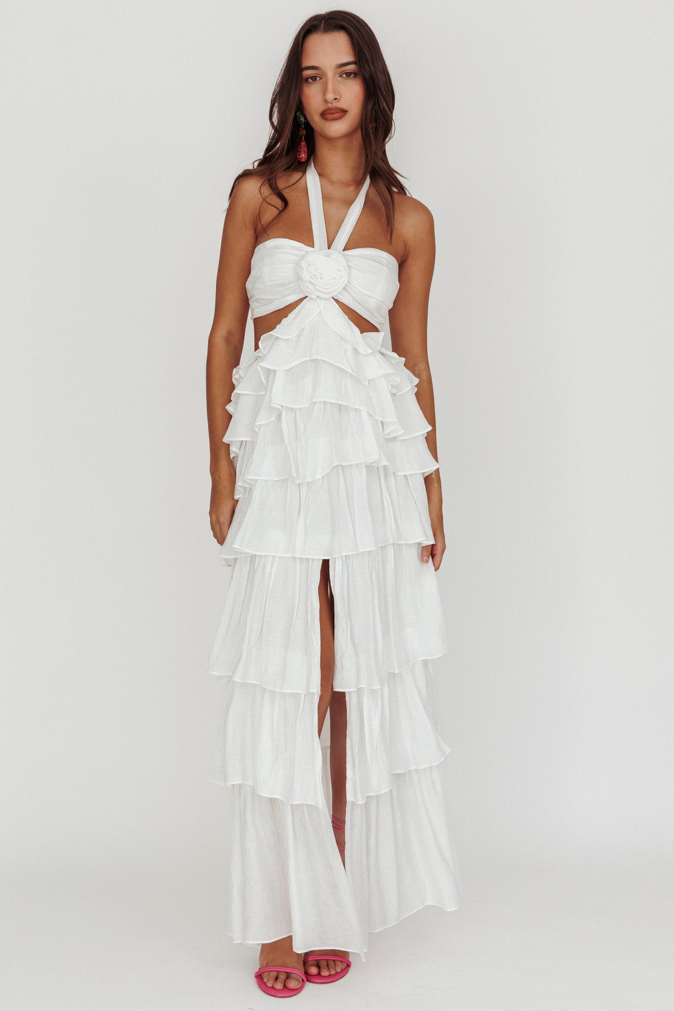 Morpheus Ruffle Halterneck Maxi Dress Off White