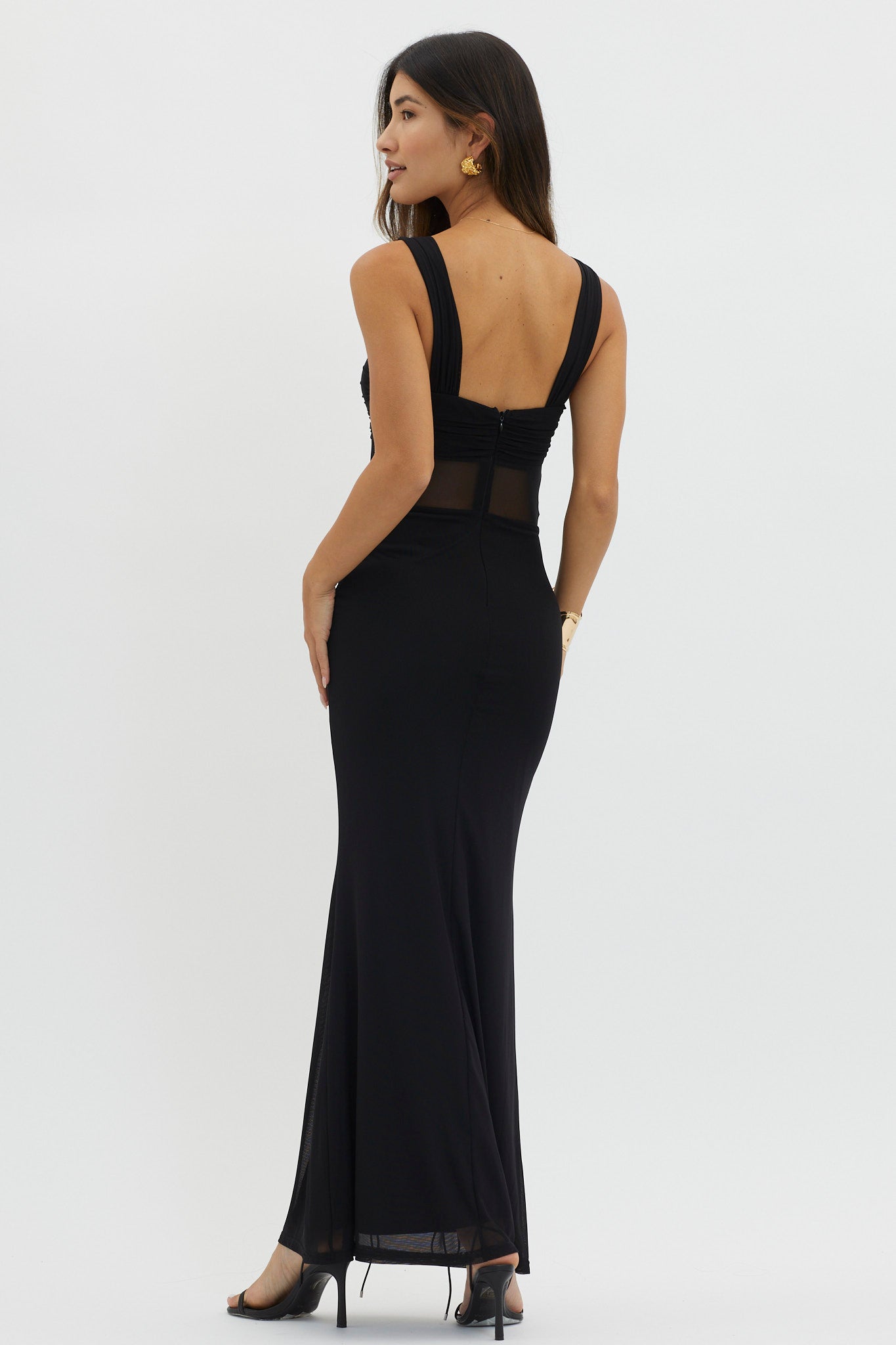 Make an entrance in our stunning Nadia maxi dress. Featuring a mesh fabric with a sheer waist, we're in love! Perfect for a wedding or birthday dinner! Team it with a clutch and nude heels for a look that will turn heads.