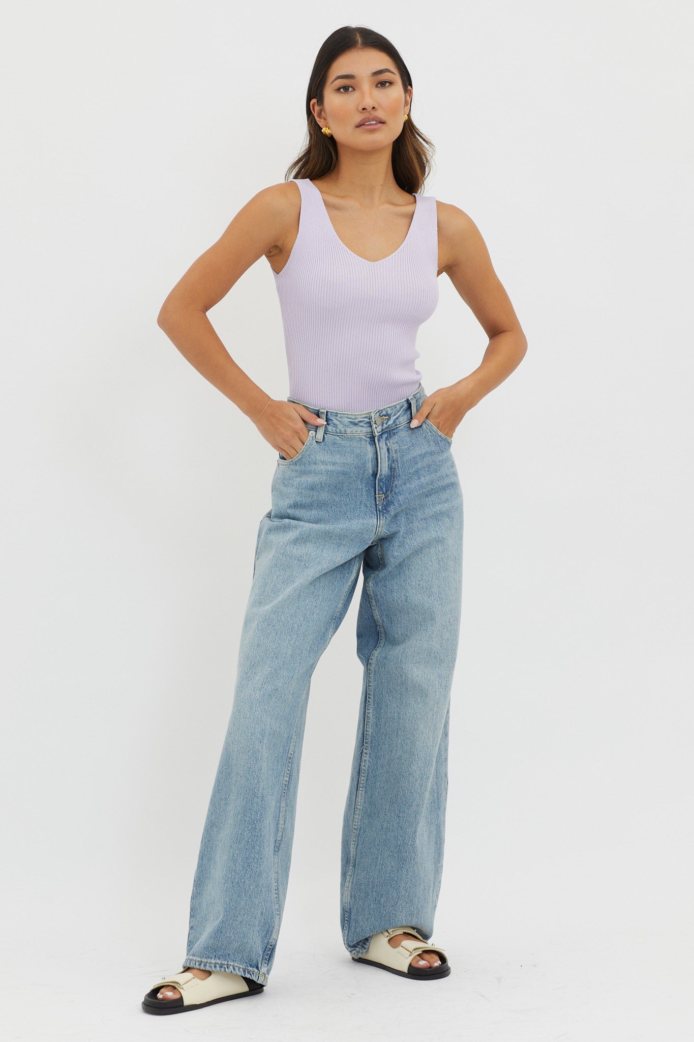 Off-Duty V-Neck Ribbed Knit Top Lilac