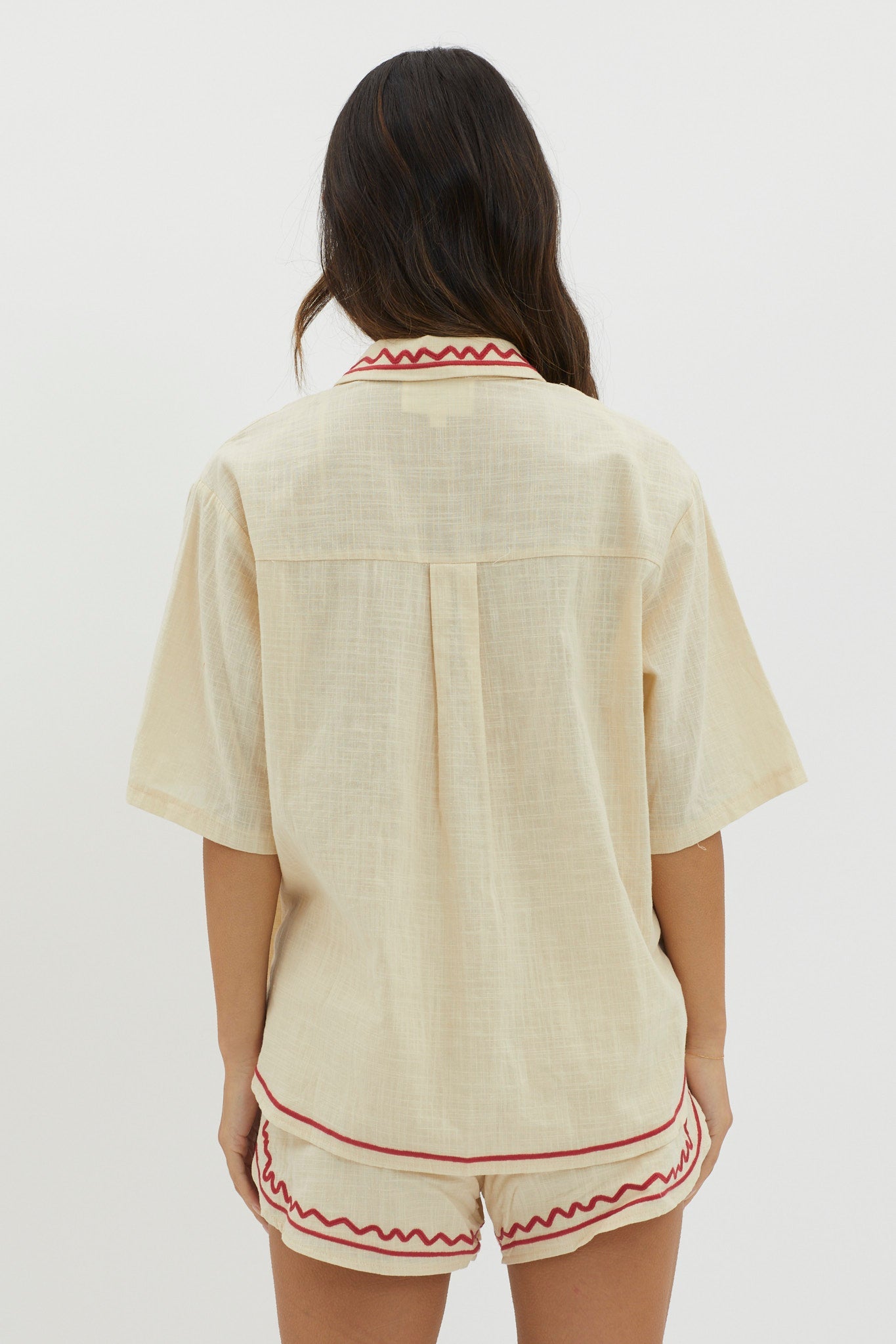 On Vacay Elastic Waist Shorts Embroidered Beige