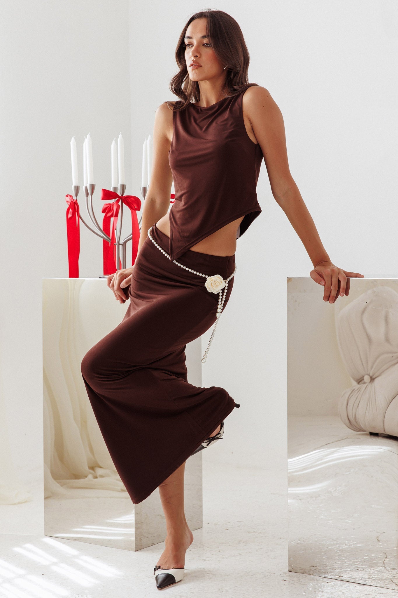 Float through your weekend in our chic Palos Verdes maxi skirt. It features an elastic waist and stretchy fabric and is super comfortable! Perfect for going from desk to dinner. Team it with its matching top and a baguette bag for an It Girl look we are loving.