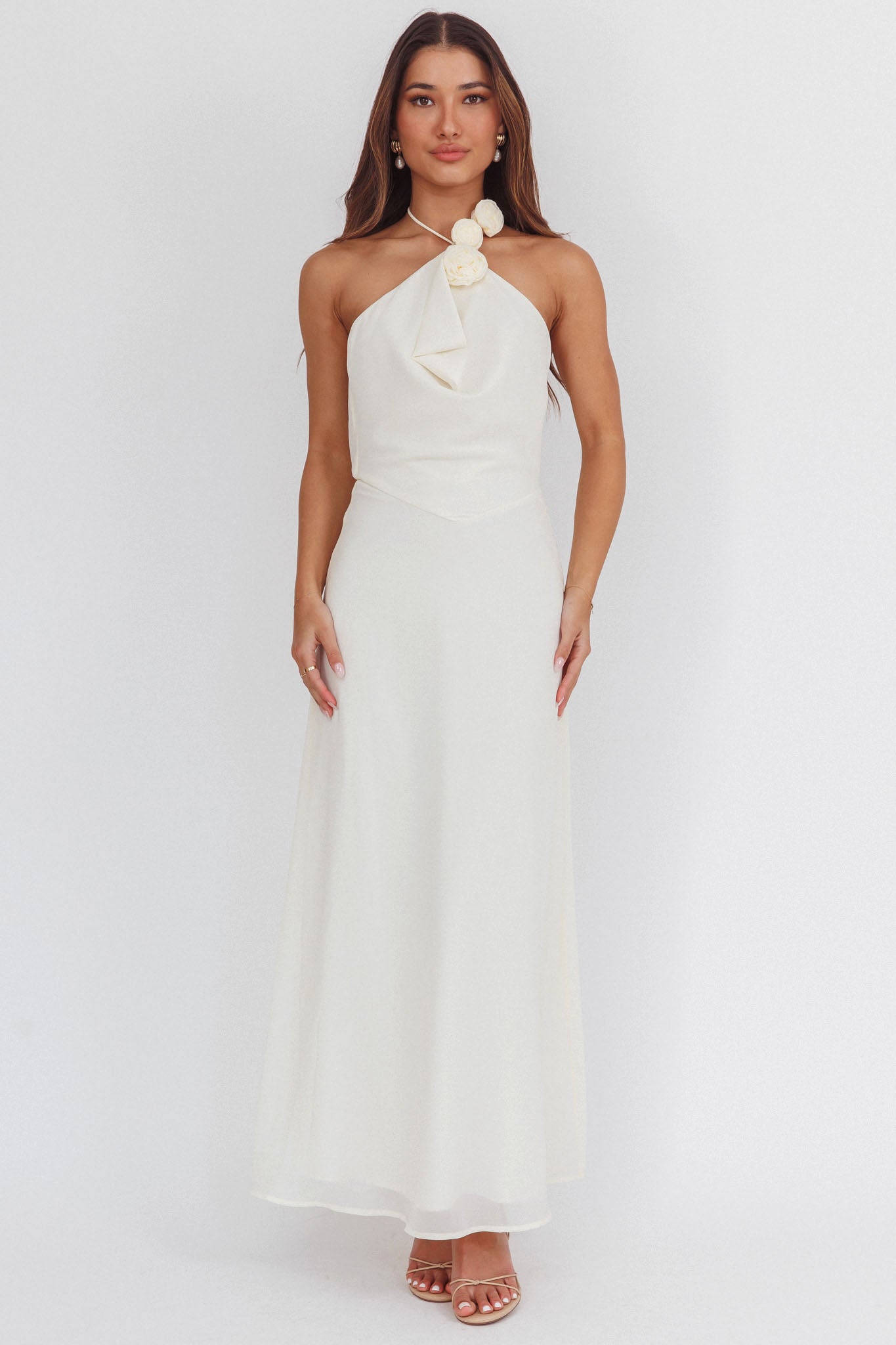 Petronilla Rosette Halterneck Maxi Dress Eggshell