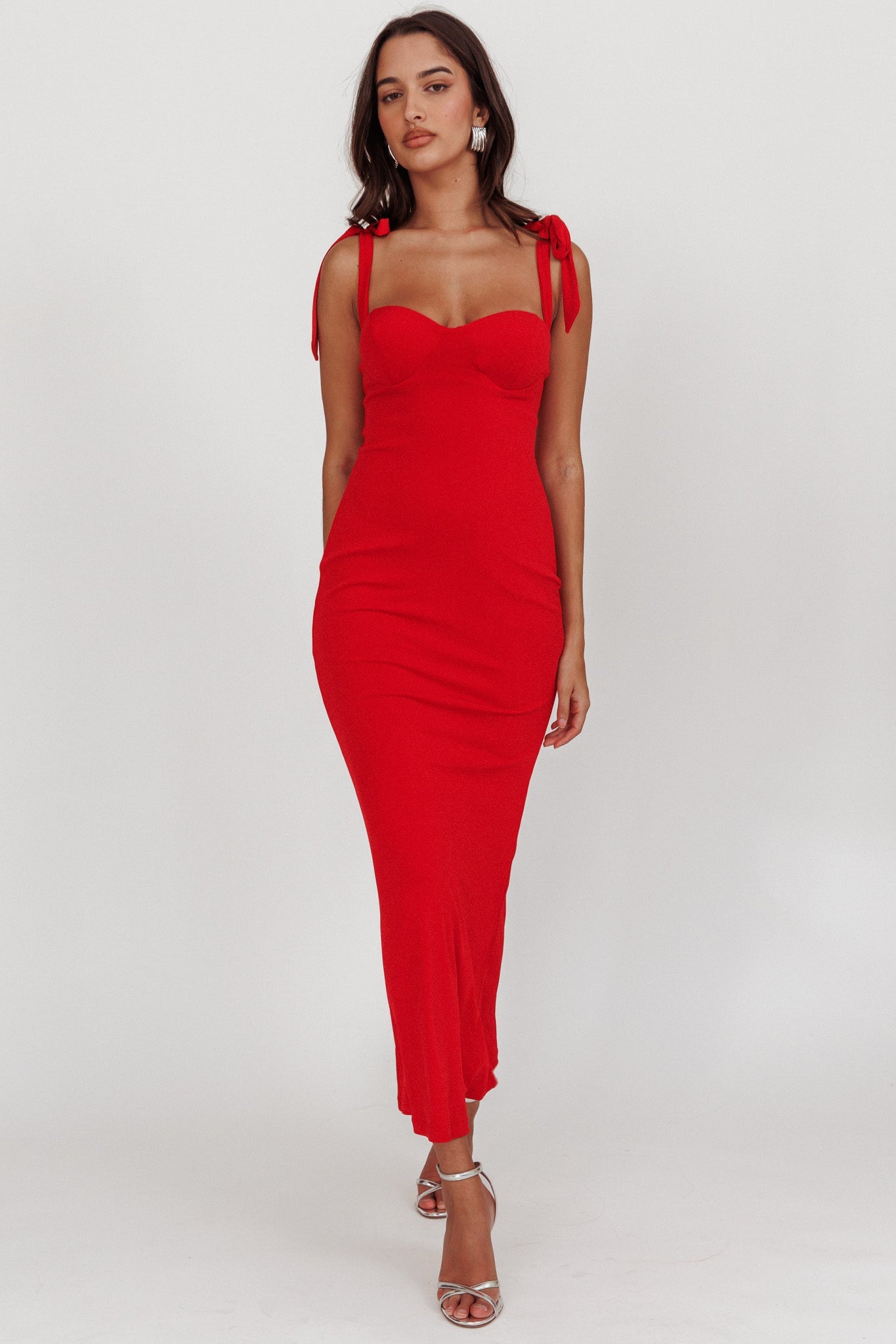 Heads will turn when you walk by in our gorgeous Rose Garden maxi dress. We are in love with its feminine, tied bow shoulders! Perfect for a garden wedding or a special event teamed with strappy, nude heels and a clutch for a dreamy look we are loving.