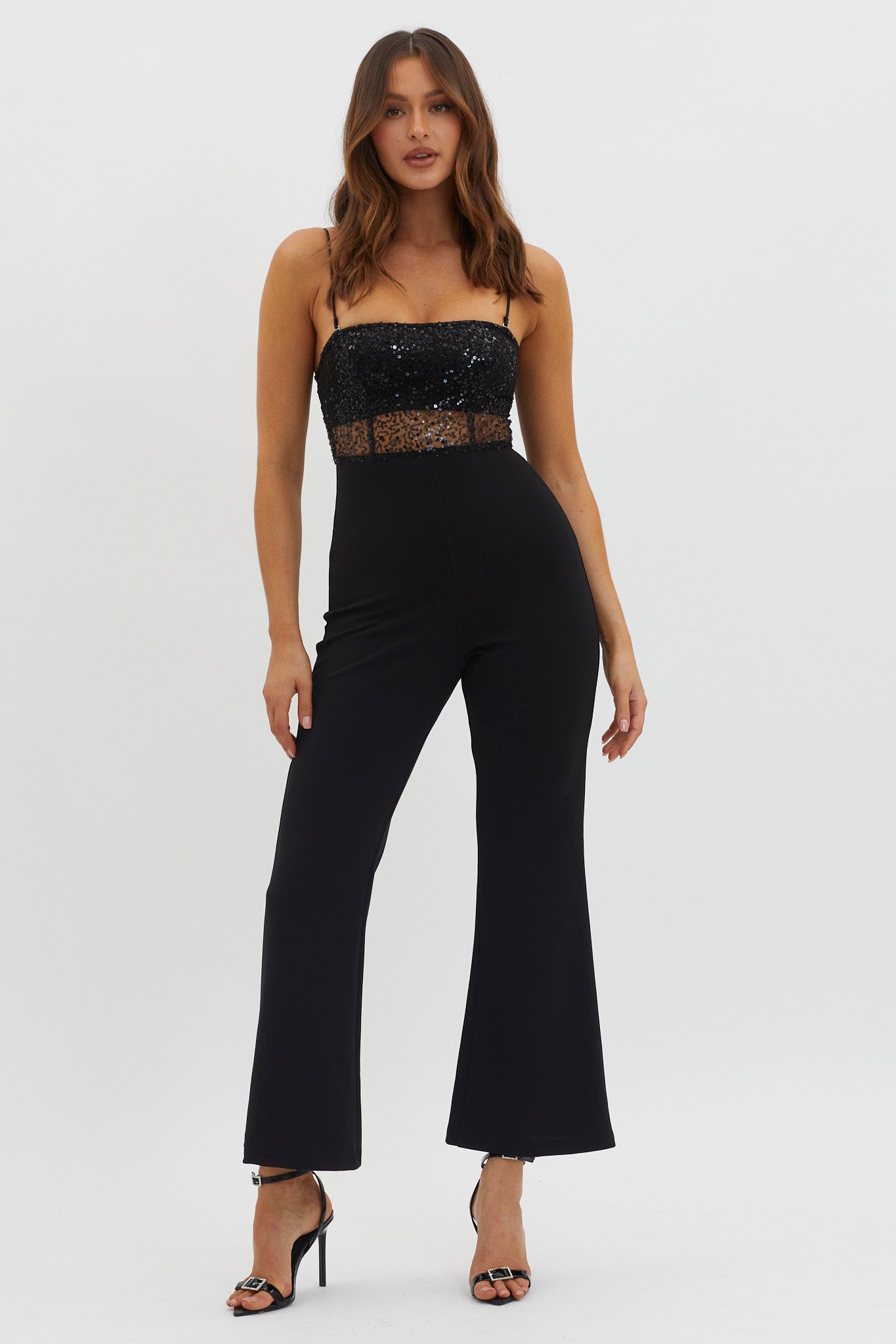 Steal the show in our hot Sabina jumpsuit. We are obsessed with its sparkling sequin bodice and subtle flare in the leg. Perfect for an end-of-year party or birthday dinner! Team it with strappy, black heels and a baguette bag for a super cute look.