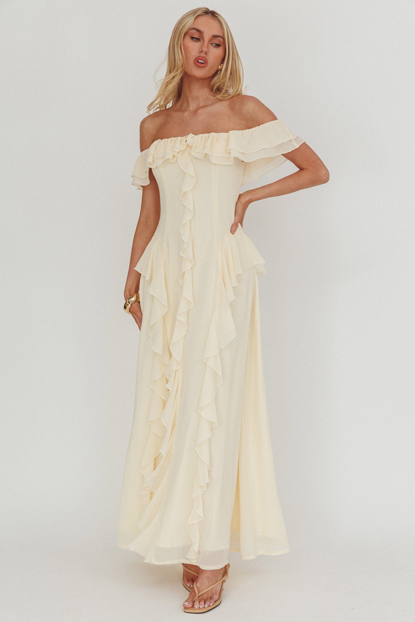 Scarlet Off-Shoulder Ruffle Trim Maxi Dress Butter