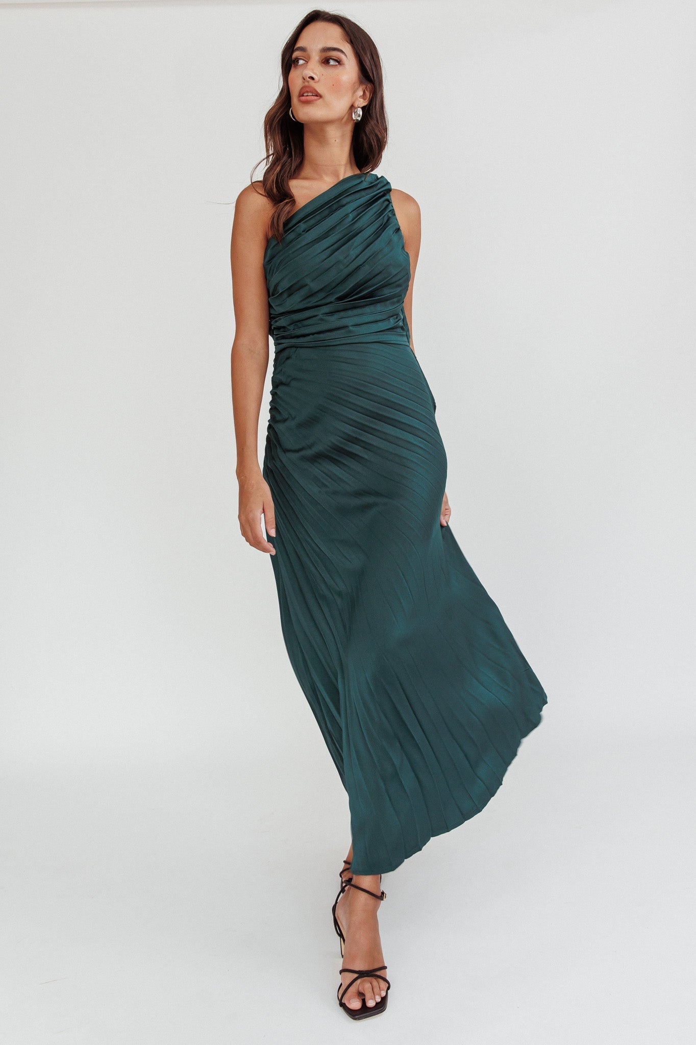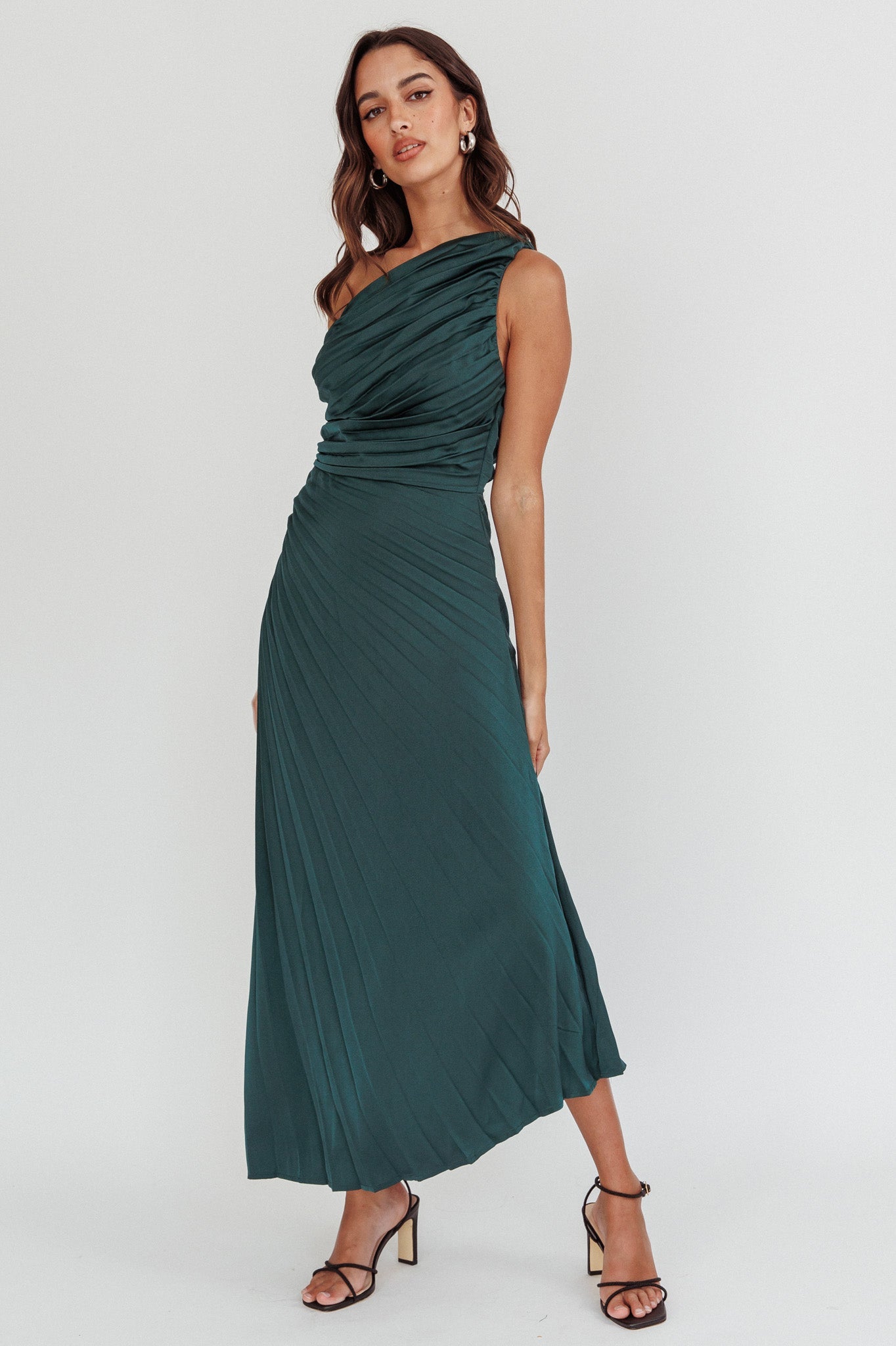 Scarlett One-Shoulder Pleat Maxi Dress Green