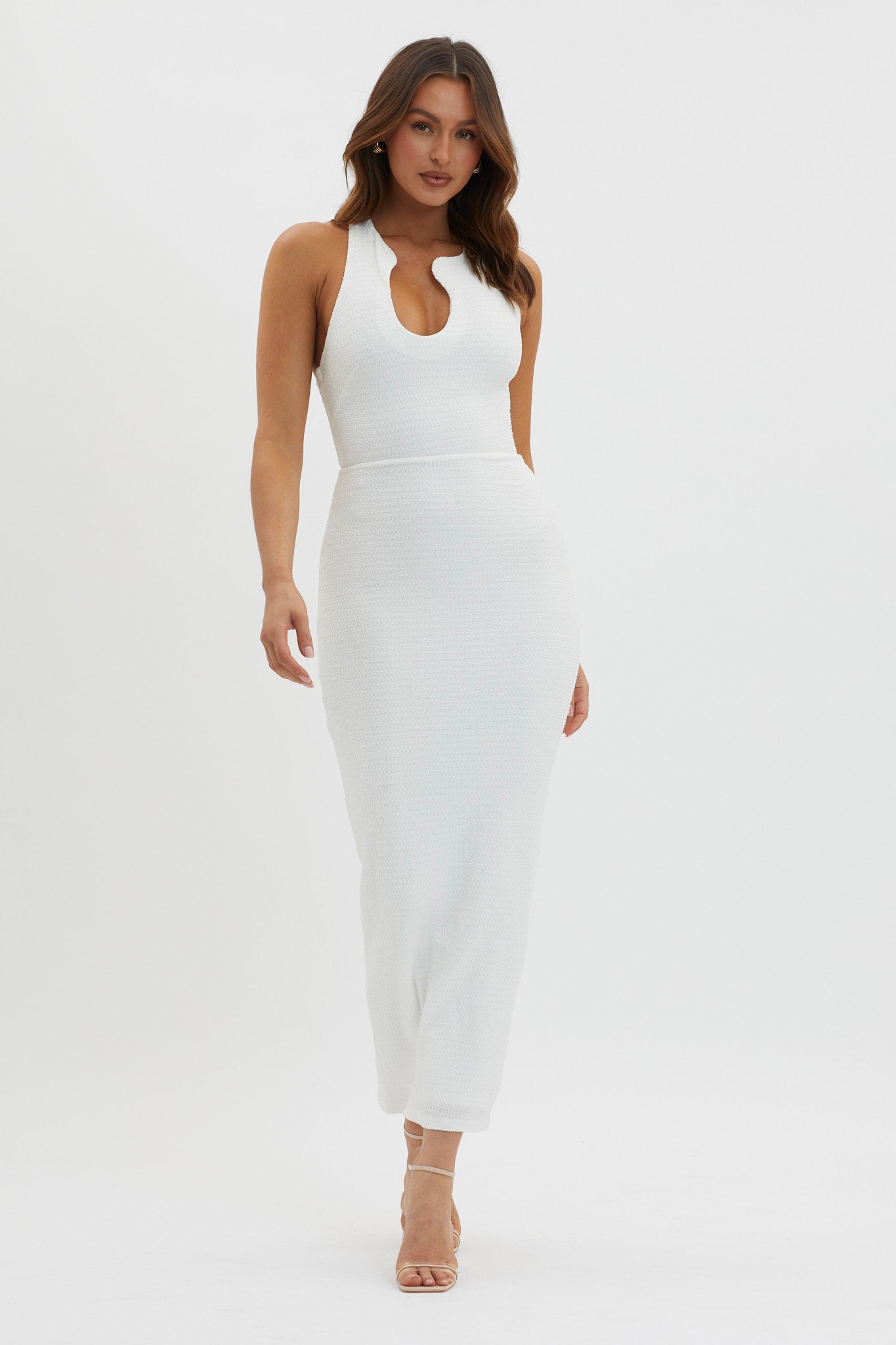 Make a statement in our chic Seek And Find Maxi dress. We are in love with its unique neckline and bodycon silhouette. It's perfect for a date night or work event teamed with nude heels and a tote for a sophisticated look.