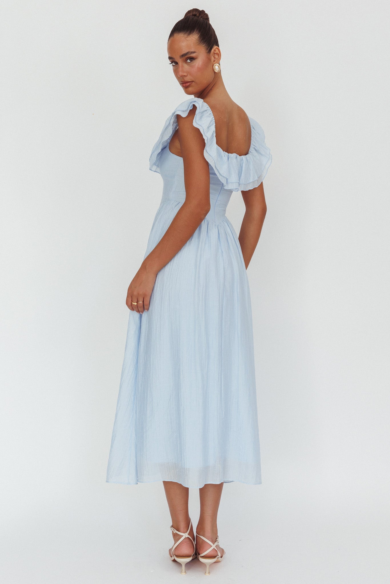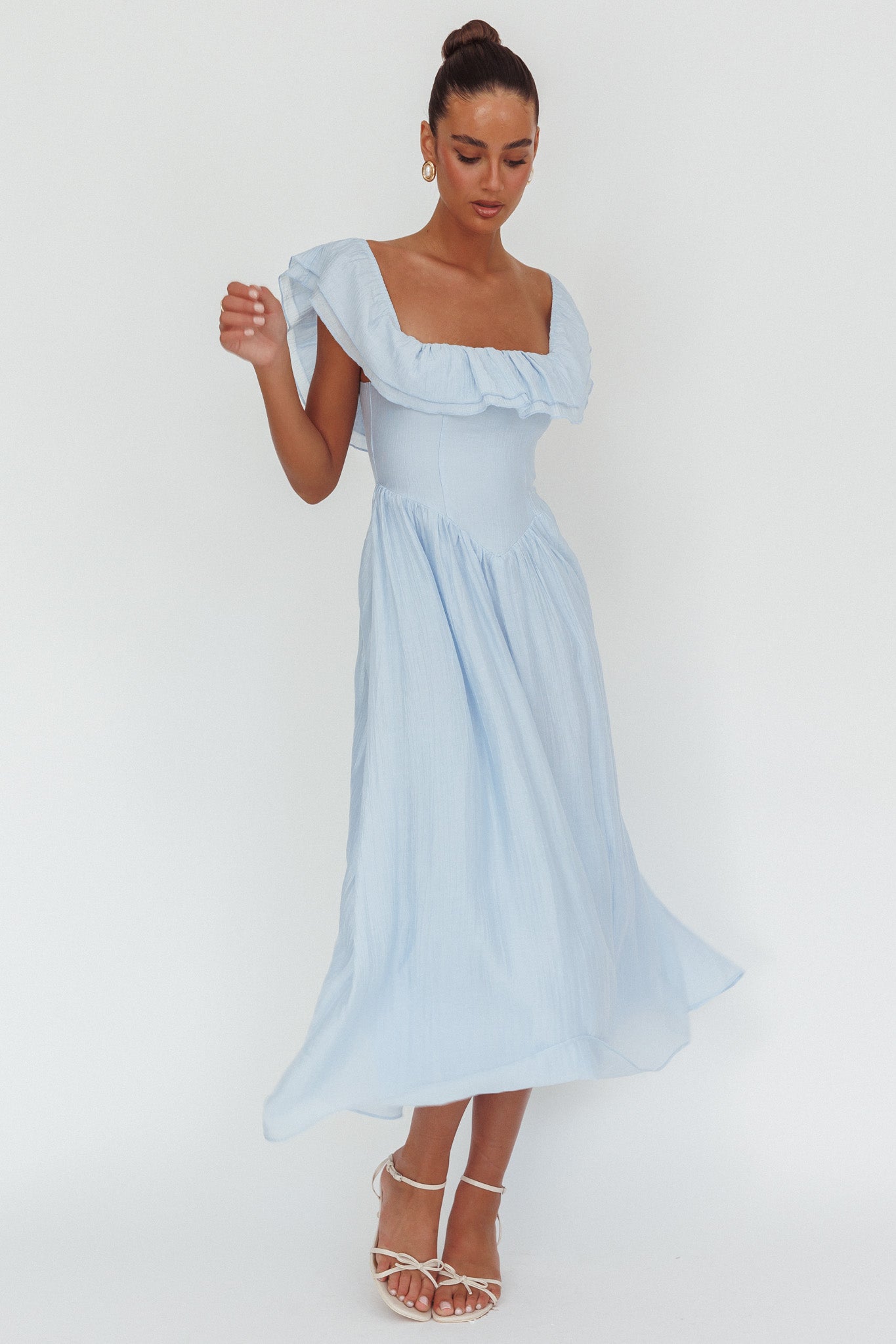 Serinah Basque Waist Off-Shoulder Maxi Dress Blue