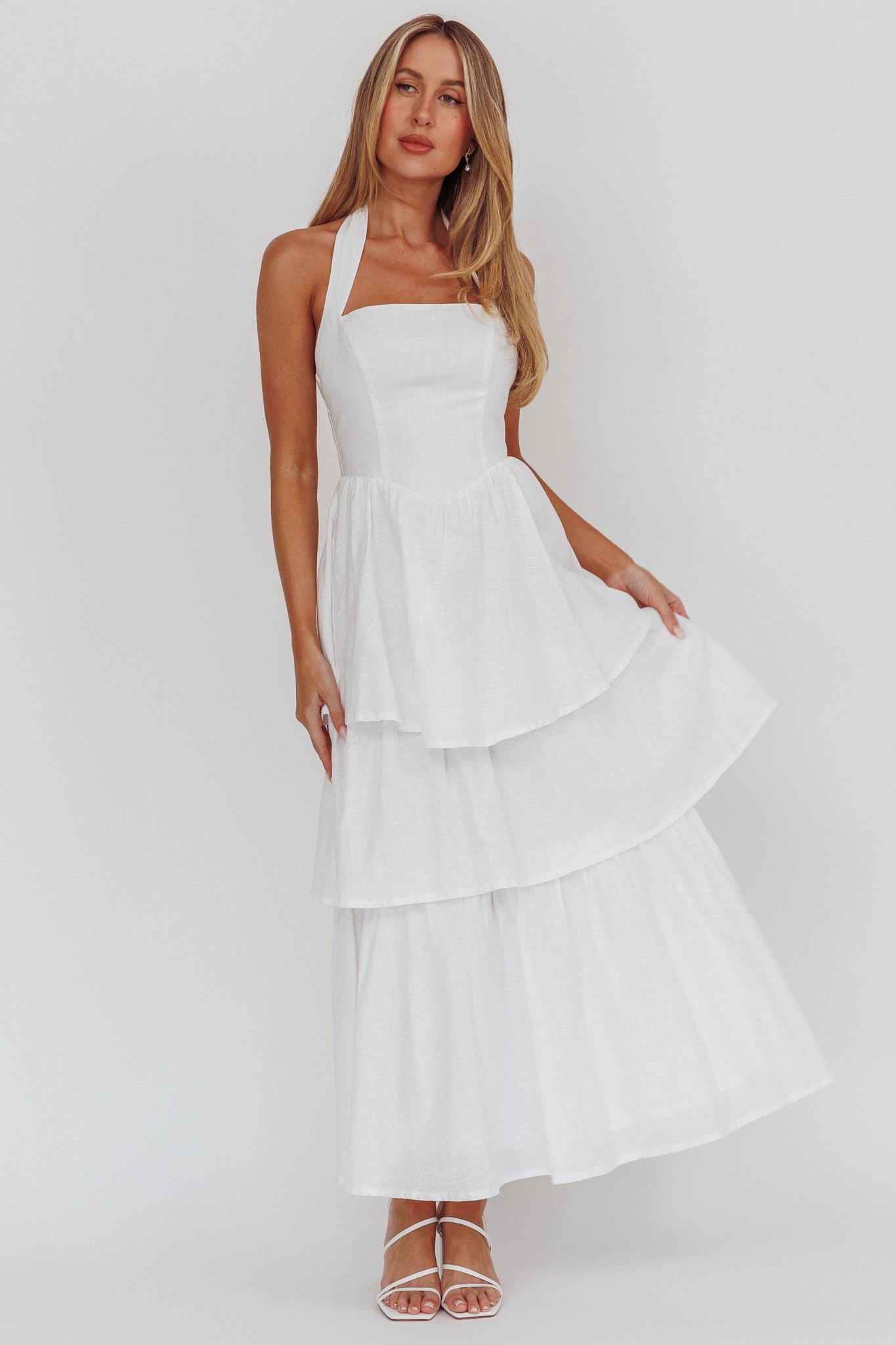Shaya Tiered Ruffle Maxi Dress White