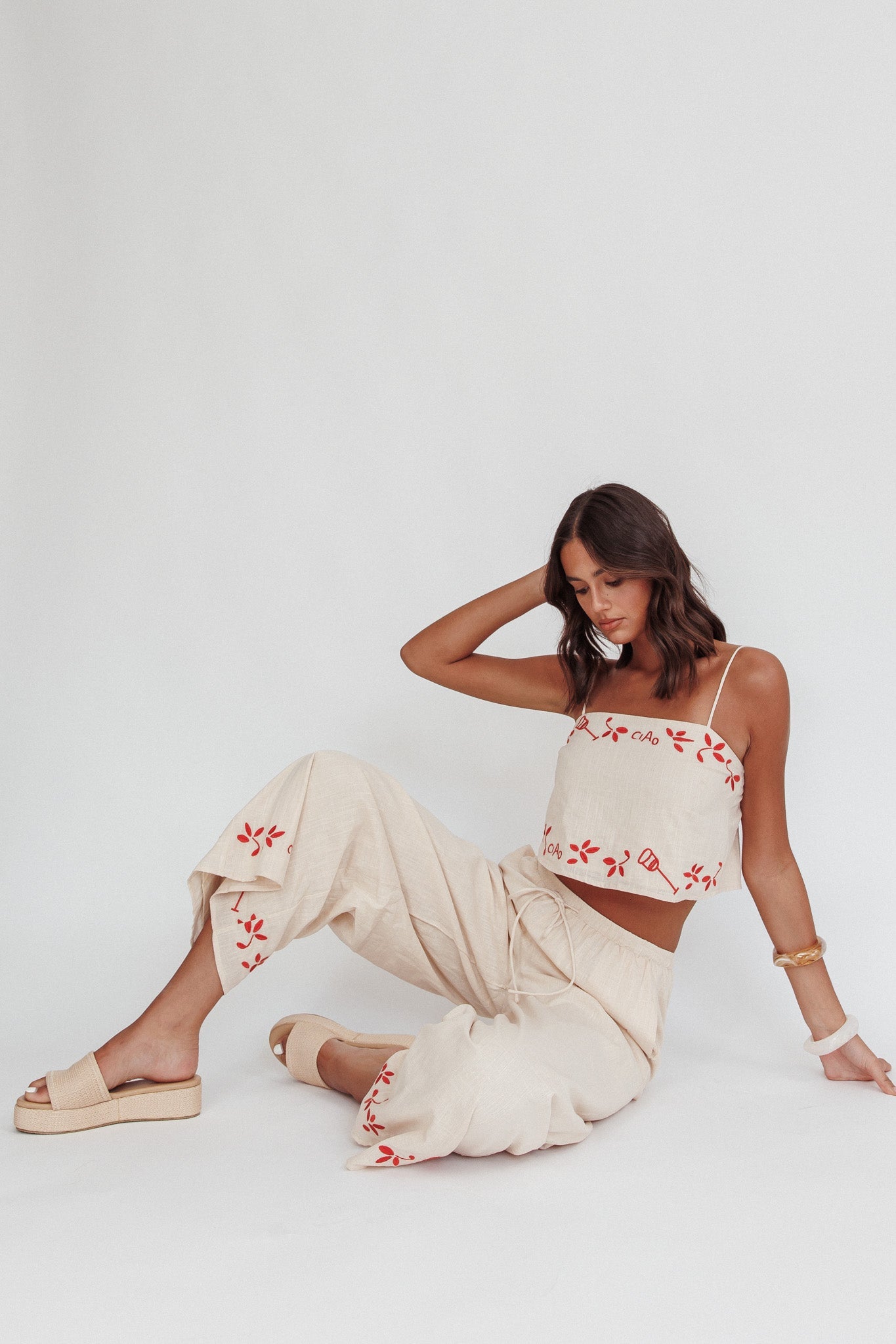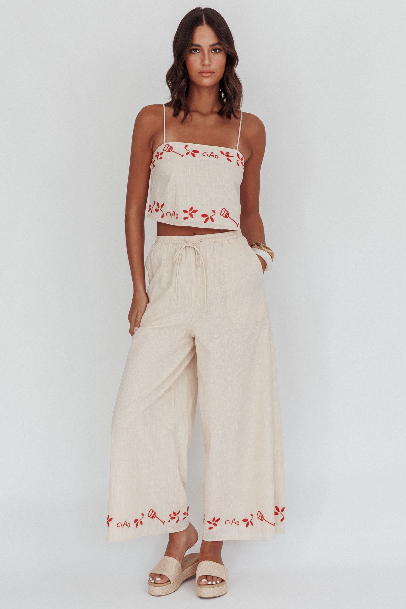 Sorrento Summer Embroidered Wide-Leg Pants Oat