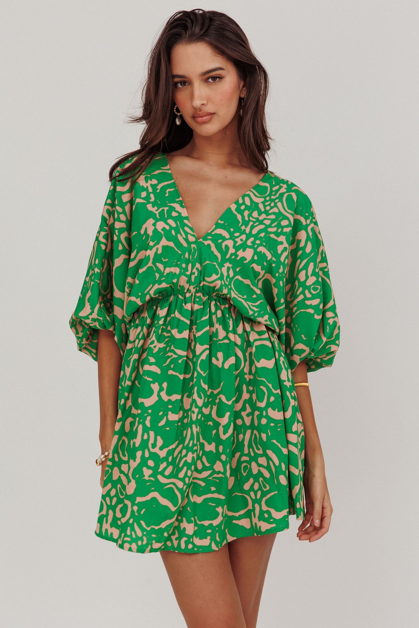 Sugar Coat Print Puff Sleeves Mini Dress Green