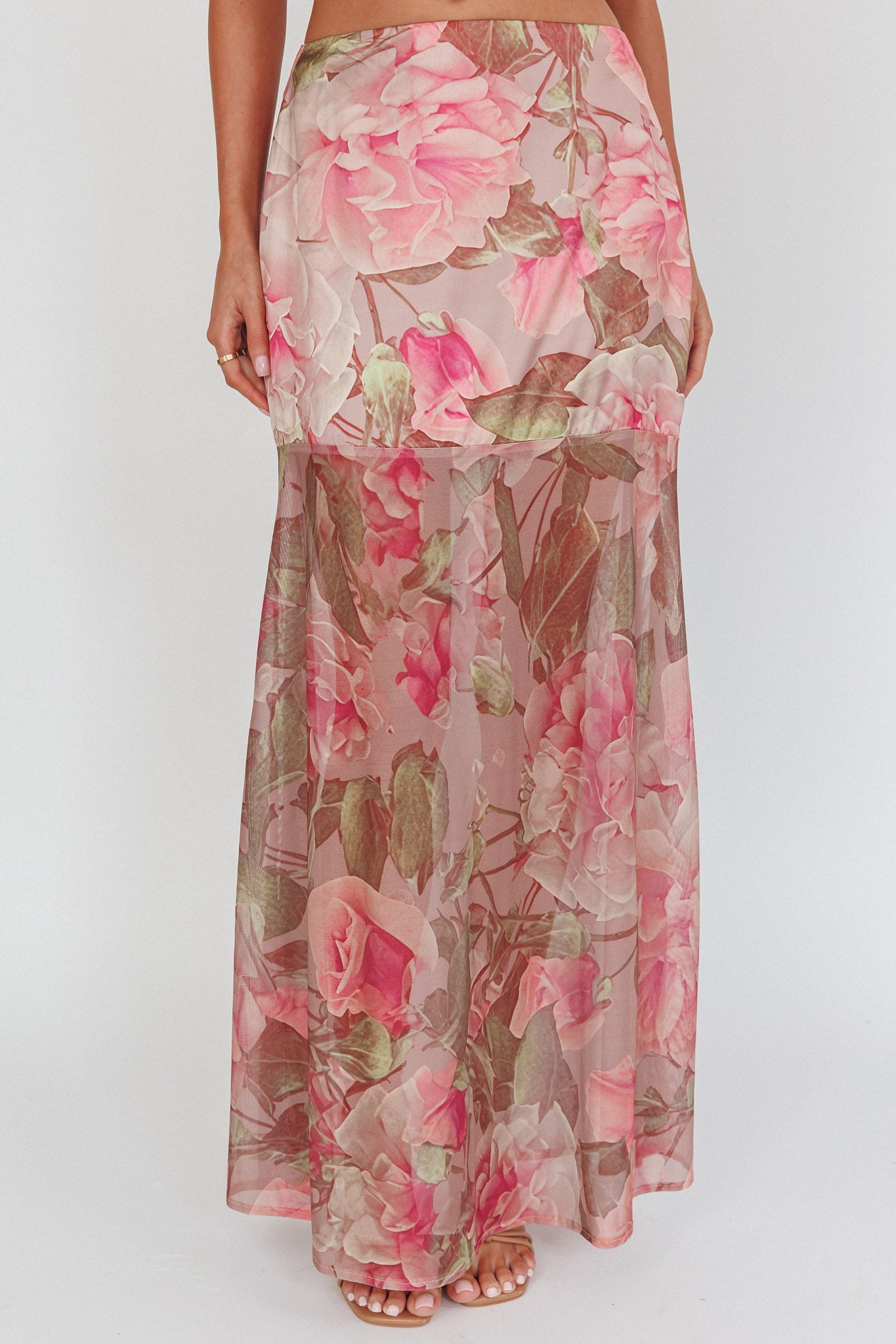 Sunset High Sheer Hem Maxi Skirt Floral Blush
