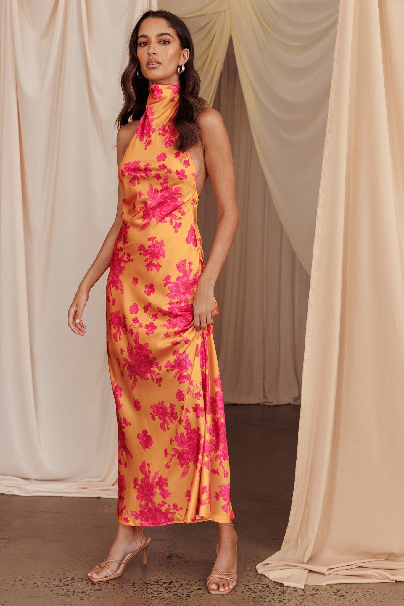 Sweetest Sundays Halterneck Open Back Dress Orange